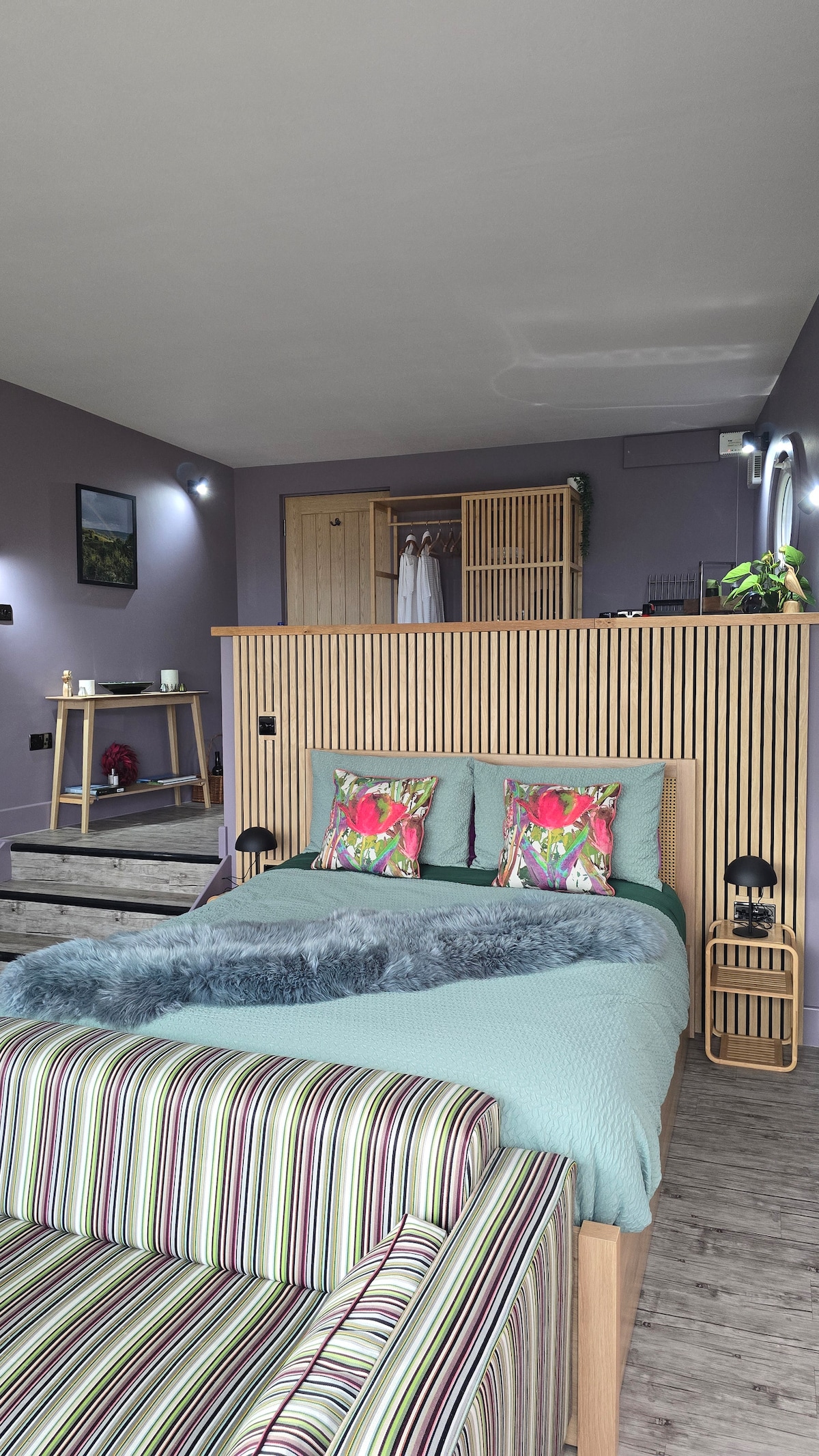 Totally relax in this calm, stylish space in its rural setting. The studio has been recently refurbished to a very high standard and is a calm comfortable space well equipped for you to enjoy during your stay. Comfortable bed, smart TV. The kitchen is spacious light airy and well equipped with oven induction hob, toaster microwave, kettle and washing machine. Tea coffee sugar are supplied with fresh milk in the fridge for you to enjoy a drink upon arrival.