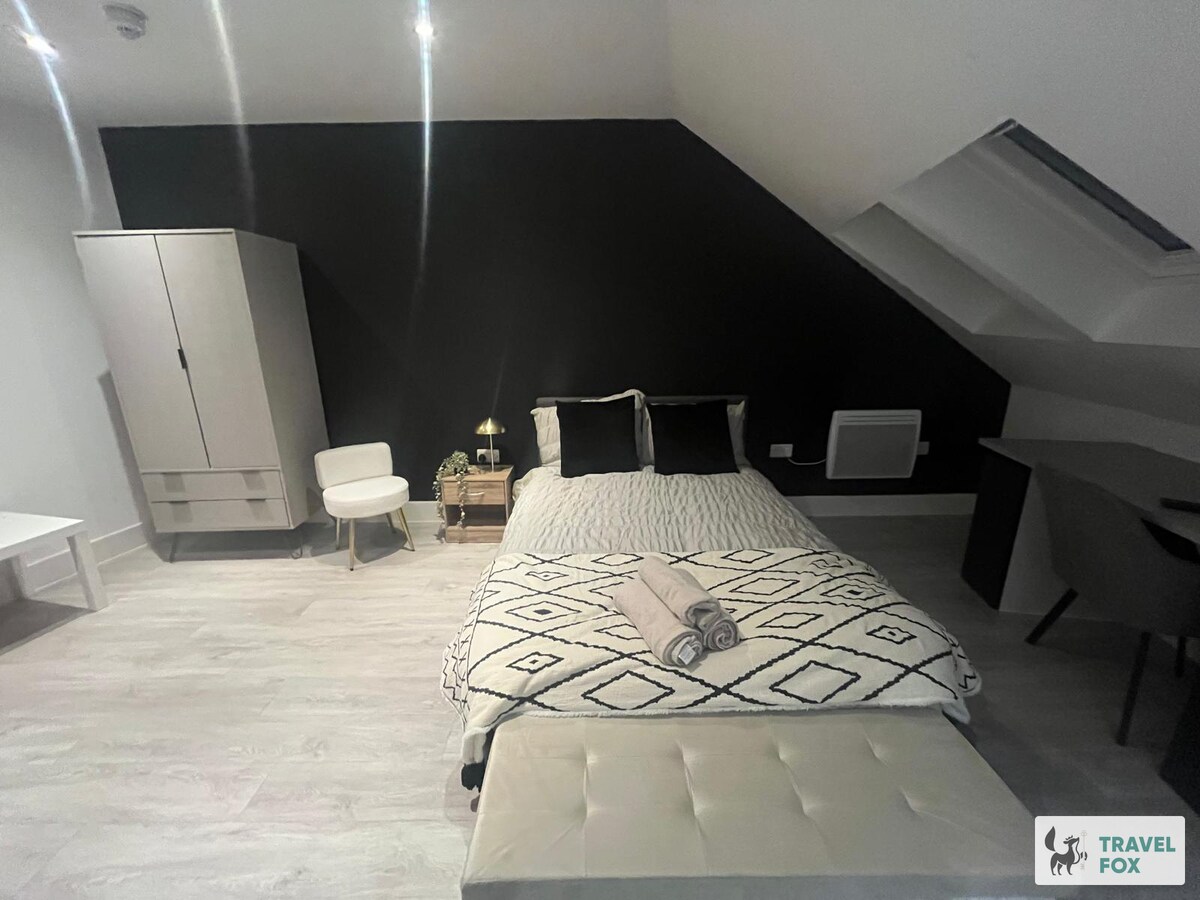 入住這間令人驚豔的市中心單床公寓,享受現代生活的奢華。配有設備齊全的廚房、客廳和令人驚嘆的現代浴室,配有大型步入式淋浴間。住宿期間,免費停車、健身房、屋頂露臺和真人大小的棋盤都包括在內,同時位於諾丁漢的蕾絲市場中心。 距離市場廣場、冰球場很近,距離諾丁漢森林足球場僅幾分鐘車程。