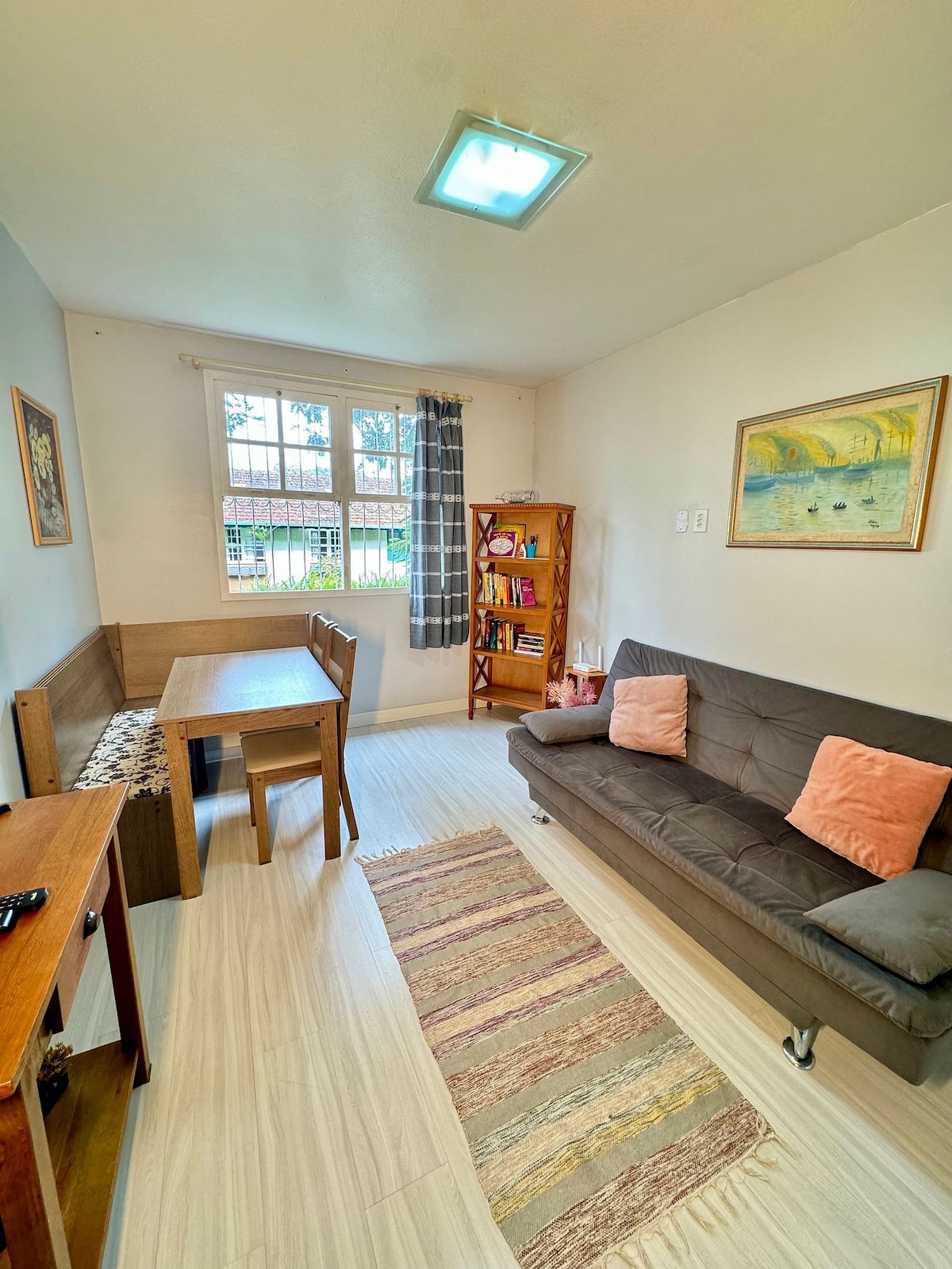 全新翻修,超級完整和寬敞的公寓。 車庫空間、冷暖氣、瓦斯淋浴間、毛巾加熱器和熱淋浴間和烘乾間。 旨在為最多四位房客提供全方位的舒適和便利,從飯店標準的床上用品和浴巾,到提供Alexa Echo Dot的人工智慧功能。 地理位置是另一個差異,位於Rua General Osório的開頭,這是城市的主要街道之一,靠近一切。