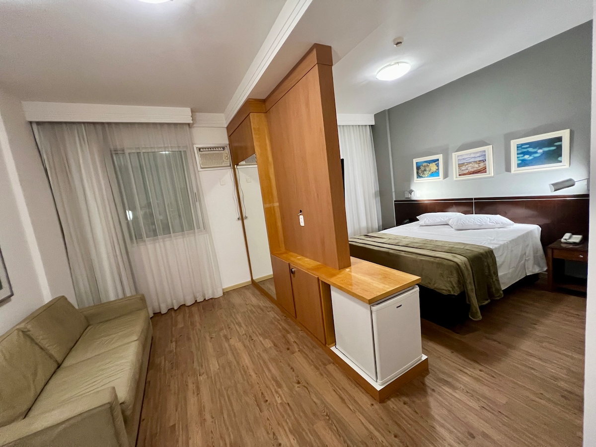 公寓位於皮埃蒙特酒店 (Hotel Piemonte) 同一棟大樓內。公寓配有大型套房,與客廳和開放式廚房相連。公寓位於6樓,配有電梯、24小時門衛和停車位。 非常靠近奧斯卡·尼邁爾林蔭路 (Alameda Oscar Niemeyer),可輕鬆前往商店、餐廳、酒吧、商店、超市和藥店。