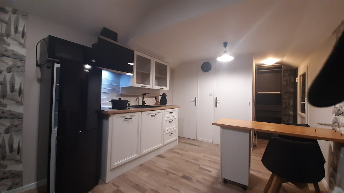 沉浸在放鬆的世界中⋯⋯ 想像一下,您舒適地坐在按摩浴缸裡,手裡拿著一杯香檳 您還可以享受按摩椅的舒適感,盡情放鬆。 這套公寓擁有舒適的閣樓氛圍,由一個設備齊全的廚房、一個浪漫的臥室和一個現代化的浴室組成。 在非典型的風格中享受完美的住宿,享受您應得的休息。 您準備好在安茹 (Anjou) 的中心探索我們的文化遺產了嗎