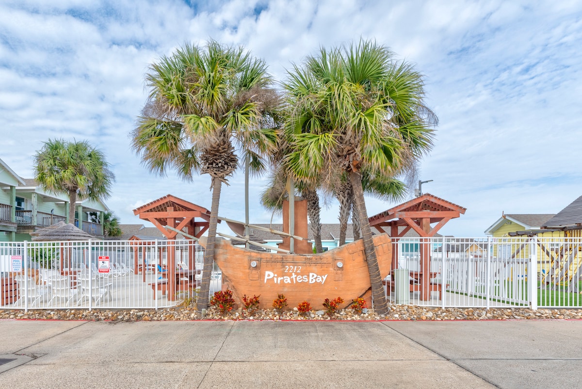 This 3-bedroom vacation home at Crane's Landing in Pirates Bay has EVERYTHING you need for an amazing getaway to Port Aransas, Texas! • Fully Equipped Gourmet Kitchen w/ Stainless Steel Appliances & Granite Countertops • 7-Minute Drive to the Beach • 6-Minute Drive to Local Dining & Shops • Private Outdoor Patio w/ Fans • Outdoor Playscape for Kids • 2 Community Pools • Private Outdoor Shower • Flat-Screen TVs in All Rooms • High-Speed WIFI • Washer & Dryer in Unit