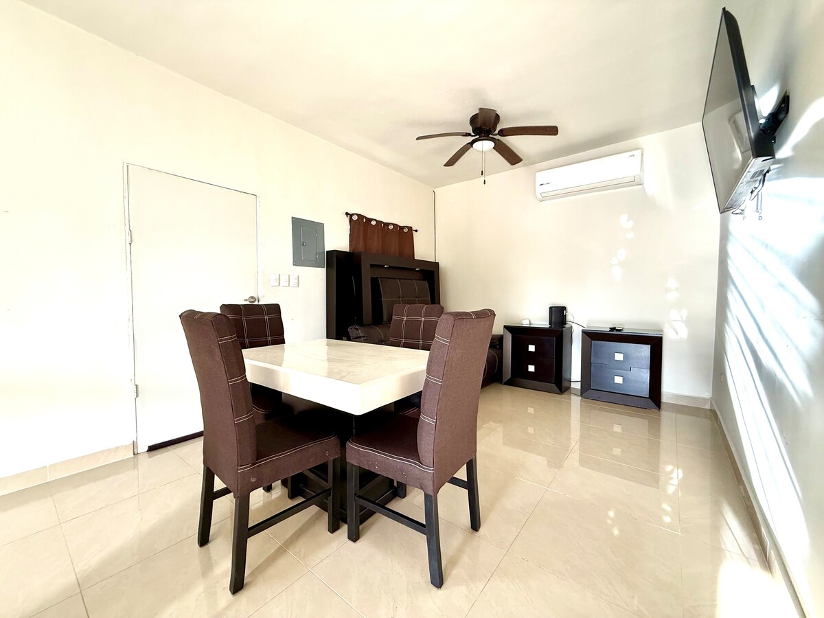 • Este partamento tipo estudio, aunque no cuenta con divisiones internas, el espacio está diseñado para ofrecer funcionalidad y confort durante tu estancia. •Estaras aproximadamente 8 minutos del Consulado y del CAS. •Tendras un OXXO a solo 50 metros y centros comerciales a 3 minutos en vehículo. NOTA: No hay cochera, ni estacionamiento privado. El estacionamiento es en la calle y no esta designado para los apartamentos en el edificio.