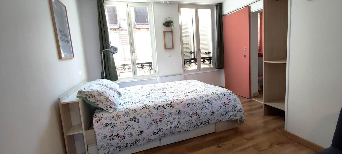 Appartement de 50 m2, 2 chambres, une double et une simple (borgne avec verrière) refait à neuf. --- Classé "Meublé de Tourisme" par Gîtes de France (3 étoiles)--- ---> Situé à 2 min à pieds de la gare et 10 min du centre ville. Stationnement gratuit. Tout équipé et décoration soignée pour un séjour cocooning! !!! NEW !!!! matelas EMMA HYBRID II dans chambre double Arrivées et départs en toute flexibilité grâce à la boîte à clé, je resterai à votre écoute durant votre séjour !
