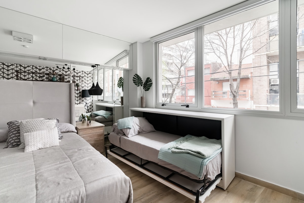 明亮的北歐風格公寓,讓您感覺像在家一般舒適。 距離 Av. del Libertador 50 公尺,距離 Av. Cabildo,這是一個完美的區域,適合那些尋求舒適、自然和都市生活的人。 非常適合跑步、購物、散步和觀光。 大樓安靜且交通便利,公寓還有車庫可供使用,車庫需單獨租用,非常適合開車旅行的人。