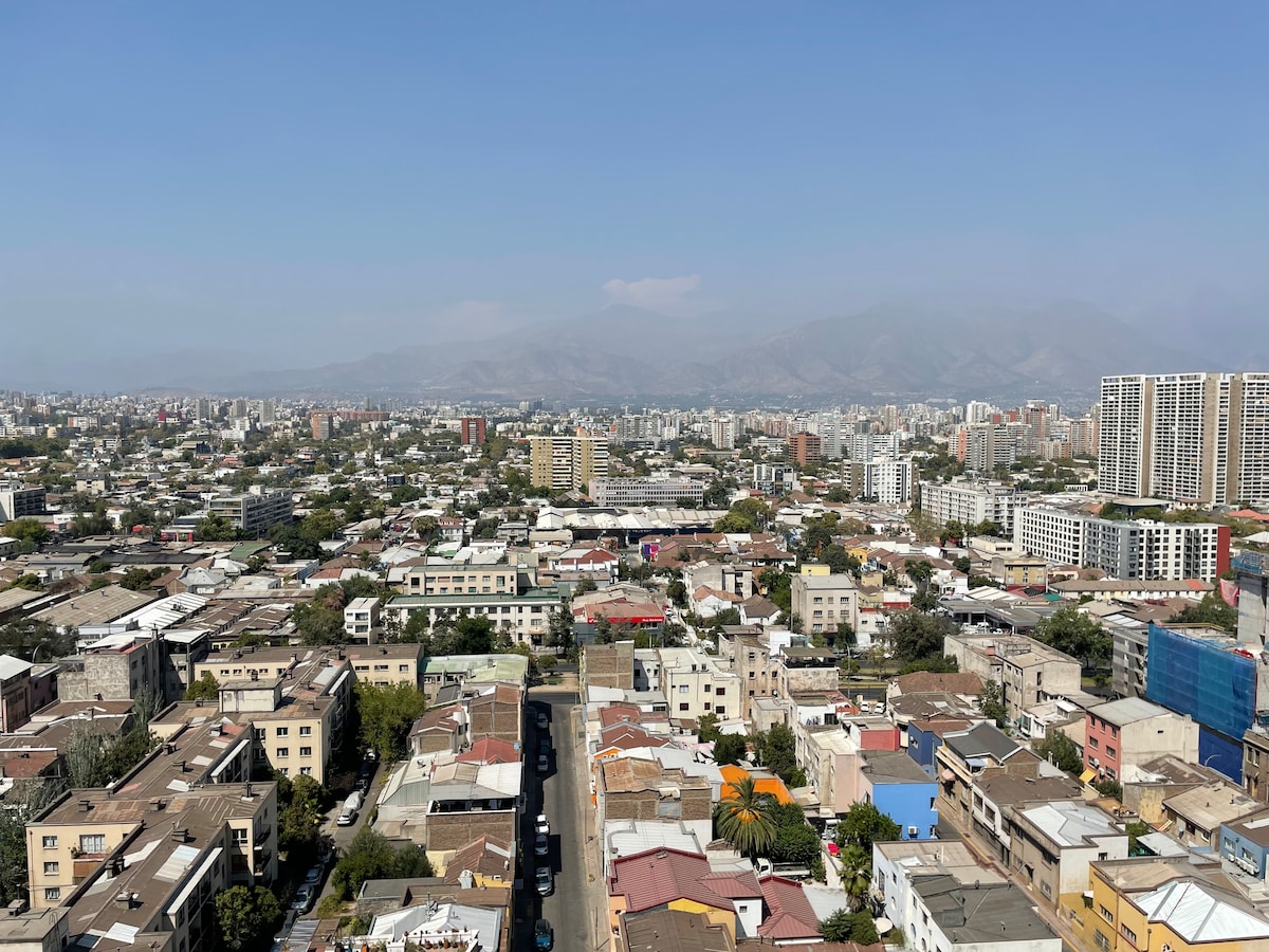 位於普羅維登斯市中心的優雅公寓。 可欣賞到安第斯山脈和聖克里斯托瓦爾山的壯麗景色。距離 Los Leones 地鐵站(1 號線)、Tobalaba MUT 城市市場和智利最大的購物中心 Costanera Center 僅幾步之遙。周圍有各式各樣的餐廳和酒吧。 非常適合短期和長期住宿,我們為您提供完美的度假勝地,讓您在探索聖地牙哥或忙碌一天後放鬆身心。