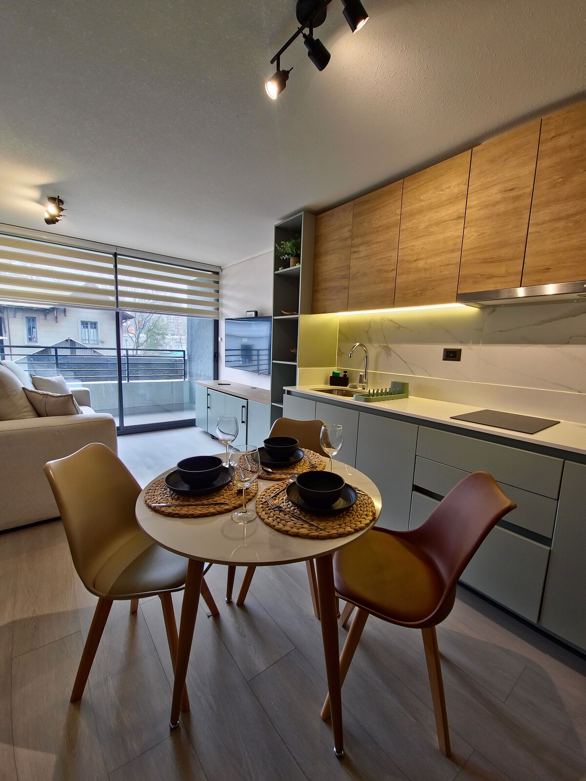 每天早上從這間舒適現代的單間公寓15樓醒來,可欣賞安第斯山脈的壯麗全景。 全新、精心裝飾和配備,讓您感覺賓至如歸。 非常適合情侶和旅客入住,位於3號和5號線Irarrázaval地鐵站前面,位置優越且安全,可直達聖地牙哥全市。 ⚡ 600MB對稱光纖網路:連線快速且穩定。