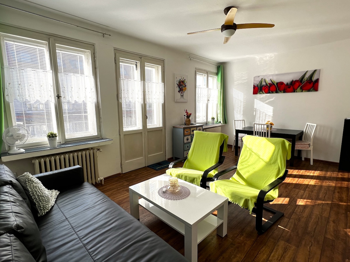 長期住宿可享優惠。 陽光充足的公寓,步行即可抵達維謝赫拉德城堡, 靠近市中心。 公寓有2 +1,80平方米 2間大臥室、設備齊全的廚房、每間臥室均設有陽臺,以及獨立的廁所和浴室。 有6張床。 1張雙人床和5張單人床。 + 1張折疊嬰兒床。 只允許在陽臺上吸煙。 房子前面的街道上車免費。 (非常便宜,由我支付) 適合有小孩的家庭。 我們期待您的到來!