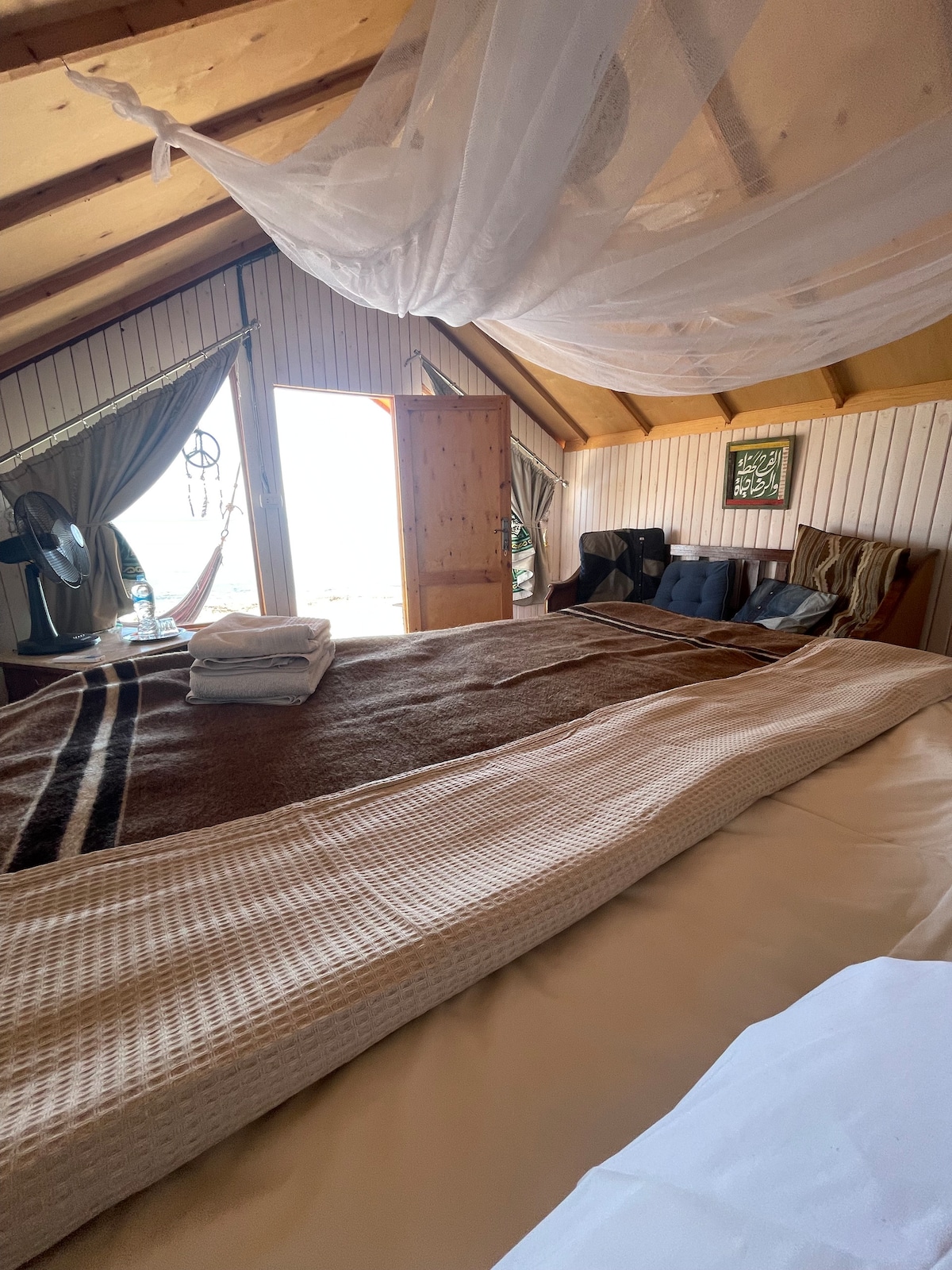 在埃及努韋巴寧靜的南西奈地區,這個獨特的海灘營地放鬆身心。 逃到一個寧靜的綠洲,大自然隨時隨地圍繞著你。 無論您是尋求冒險還是放鬆,我們的海灘營地都能完美融合兩者。 探索埃及最迷人的海岸瑰寶之一——努韋巴的魅力。 立即預訂住宿,體驗簡約之美。 每間客房都提供美味的早餐,讓您的一天有個好開始。