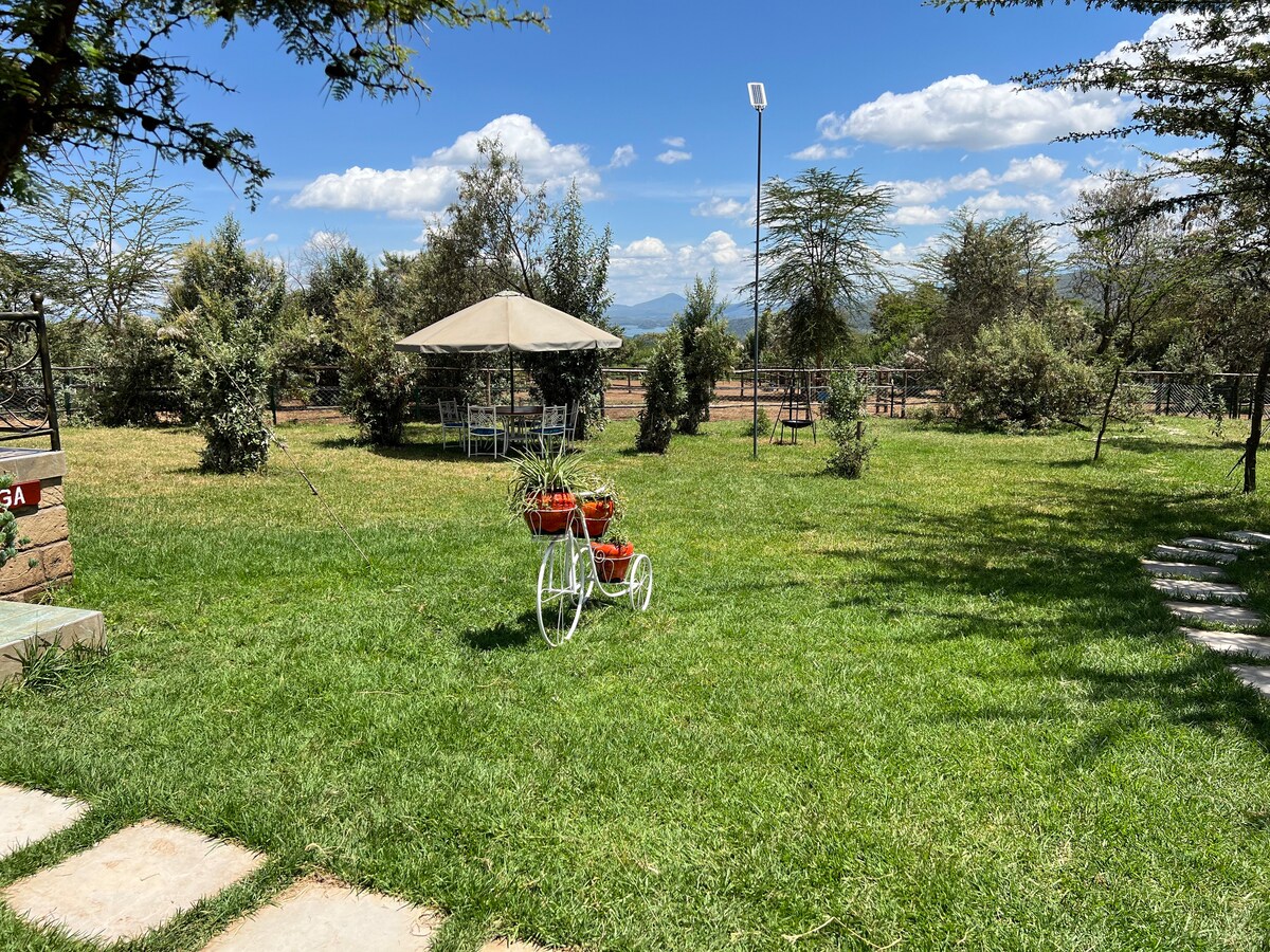 私人自炊營地+12英畝邊接克東牧場,南湖路,距離內羅畢1.5小時,可欣賞奈瓦沙湖/ Longonot ,許多遊戲- 4個雙人帳篷,全套套套房,以及一個全新的家庭小屋,可容納2位成人和2位鄰近的「樹屋」中的孩子-遊泳池、WIFI、電力、井眼、太陽能熱水、燒烤區域、電柵、4位職員,包括廚師、客用馬桶