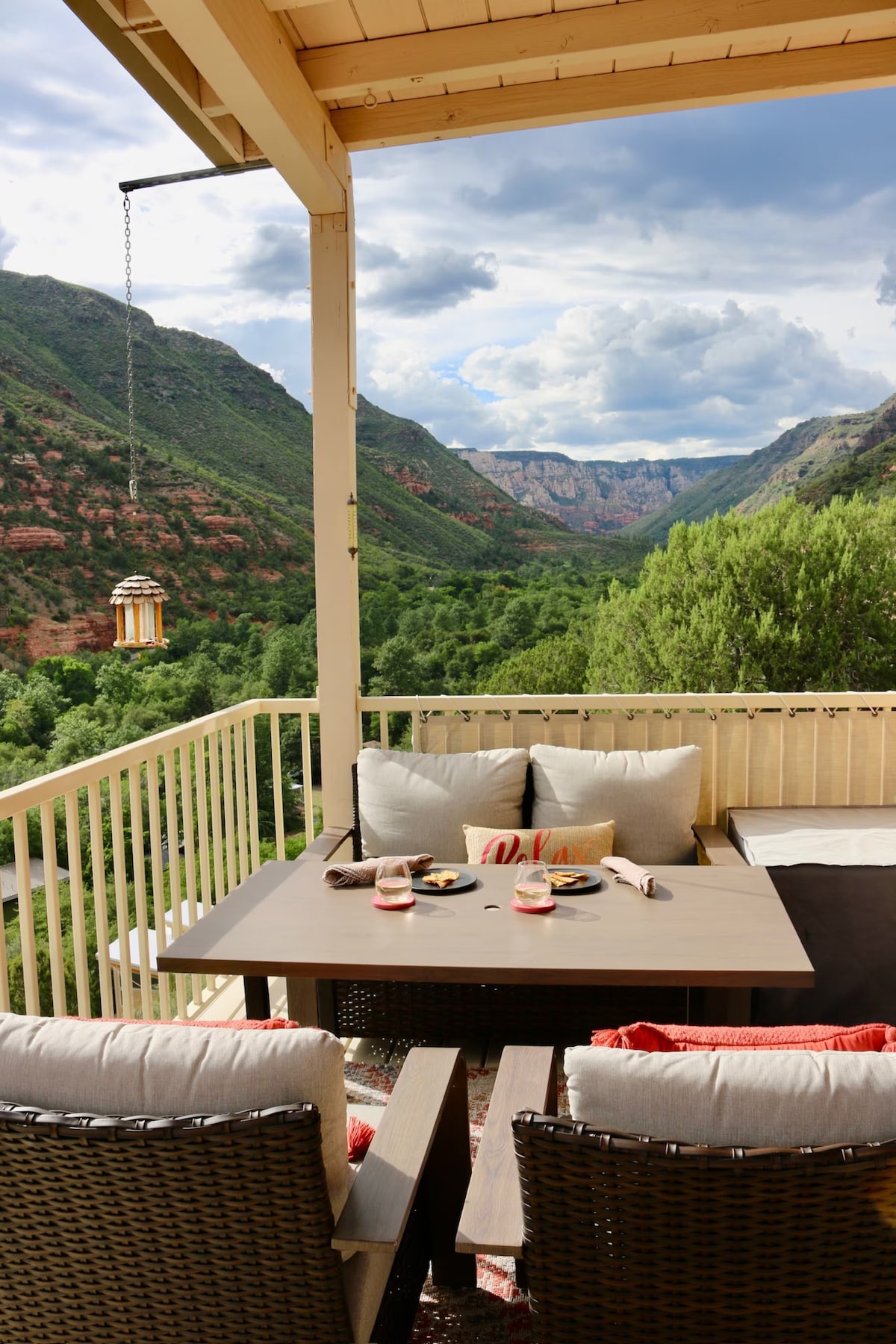 If you want panoramic views of Sedona and to relax in a hot tub after a long day of hiking, look no further. Located on Oak Creek Cliffs, this home is quiet, peaceful, and restorative. Enjoy watching the sunset with beautiful panoramic views of Sedona Red Rock sky, mountains and valley. Just a quick drive from Sedona's shops and restaurants as well as the trailheads of Bell Rock, Cathedral Rock, Broken Arrow, and many other hikes, you'll have easy access to everything Sedona has to offer.