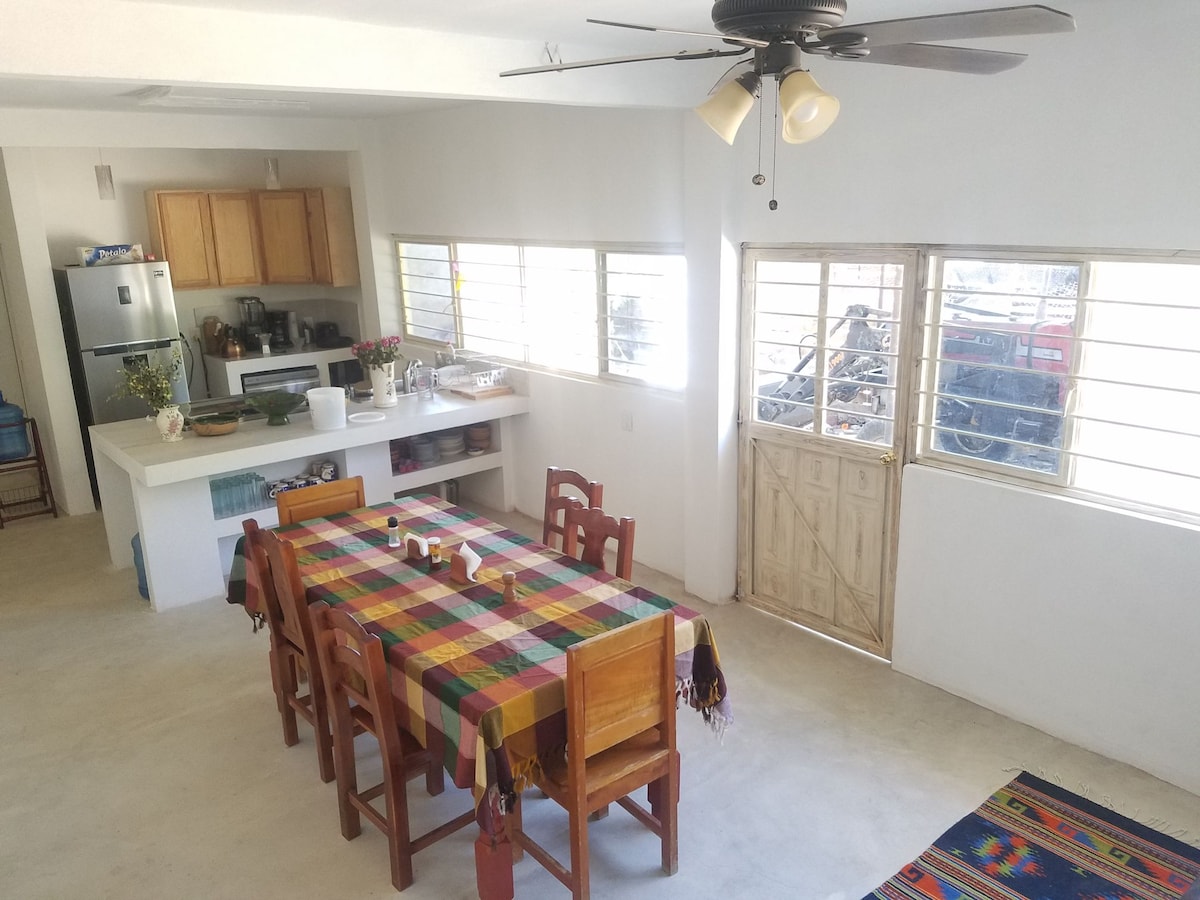 Independent bungalow within a "family ranch" with ornamental and fruit trees. Enjoy the tranquility of the countryside and the Etla area just half an hour from downtown Oaxaca. Move your office a step away from nature or come to rest but do not forget to take a walk around the property to enjoy the panoramic views of the mountains.