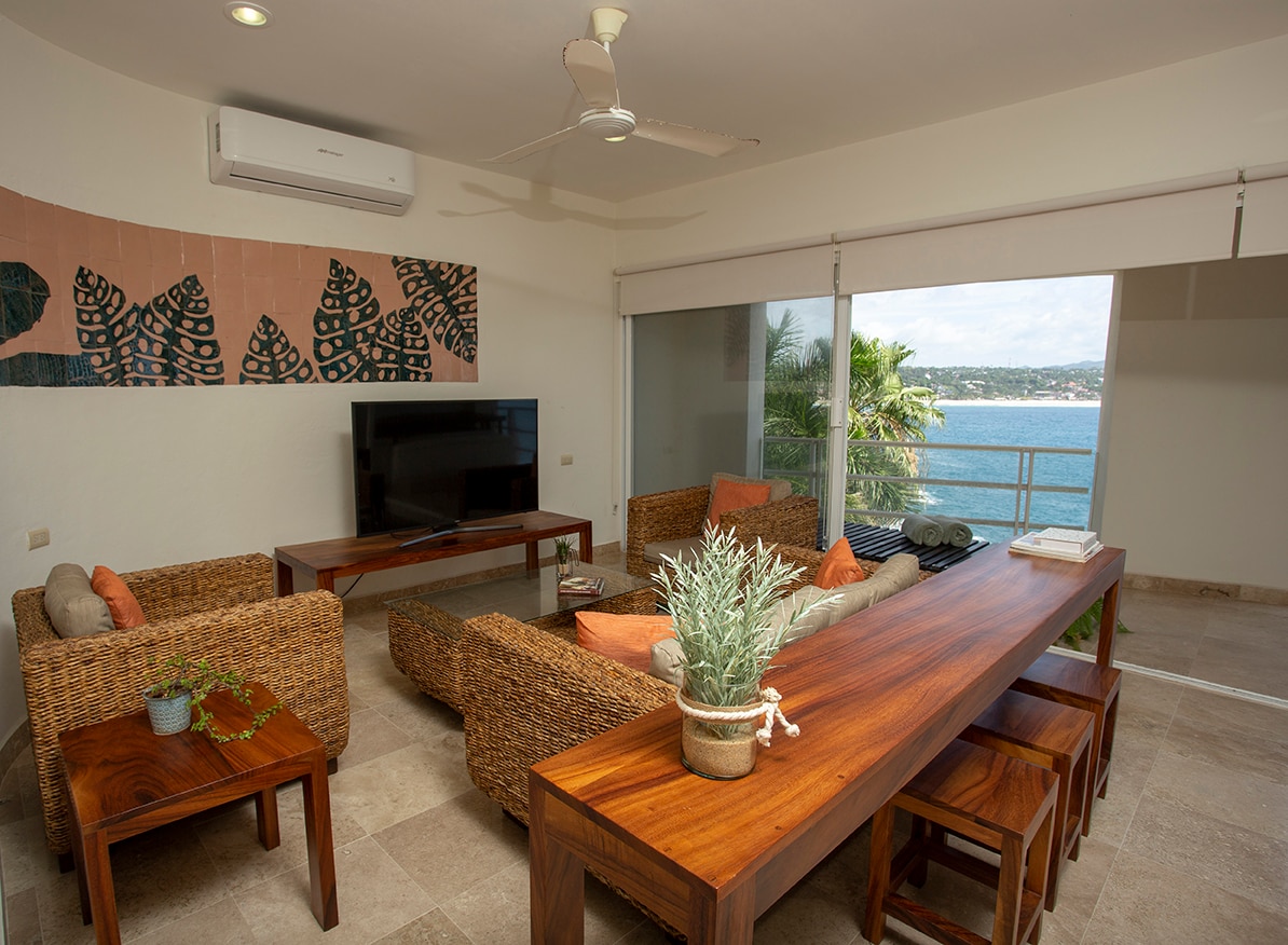 Elegante suite con cama Queensize, Smart TV, Aire acondicionado, ventilador de techo, cocina, baño y jacuzzi privado. Disfrute de los atardeceres y relaje su mente mientras contempla la vista panorámica de la ciudad, el océano y las montañas desde su jacuzzi privado. Nos encontramos en Punta Zicatela, a 7 minutos caminando de la playa, principal punto de surf, restaurantes, bares y zona comercial. Cerca de todo, pero fuera del bullicio de la fiesta. Contamos con Internet Starlink.