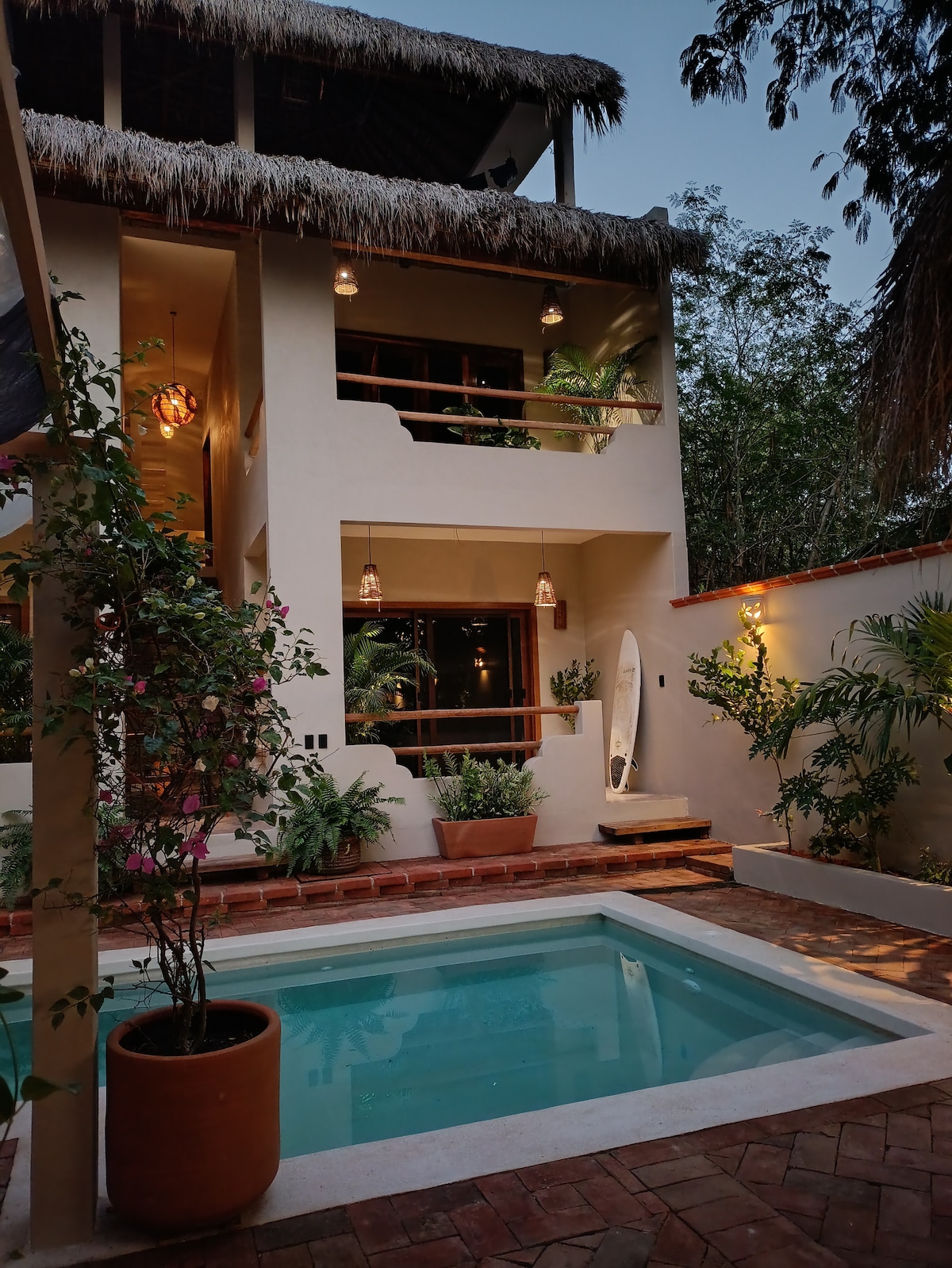 進入您自己的私人熱帶天堂,戶外客廳配有用餐區域和露臺,牆壁上流淌著棕櫚葉。 客廳有漂亮的照明、吊扇和電子設備插座,可供您與回家的朋友保持聯絡。 有小廚房,您可以在步行幾個街區前往城鎮或外出度過一天之前享用晨間咖啡。 當您回來時,您可以在吊牀上休息或在烤架上烹飪當天捕獲的魚。