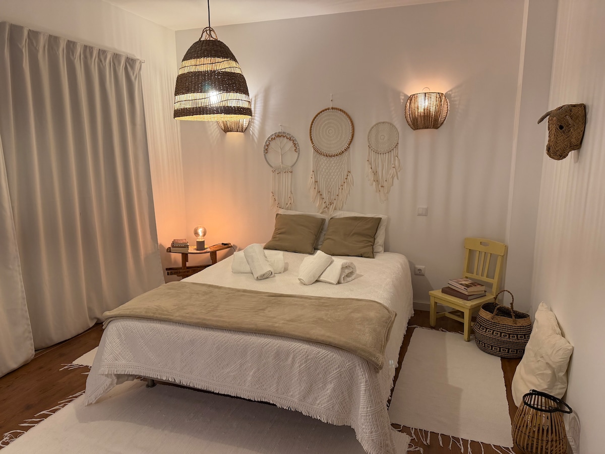 Um quarto na Casadartista, onde tranquilidade, arte e natureza se encontram, a poucos minutos da Lagoa de Óbidos e do Castelo. Suite com ar condicionado, varanda e TV. A Casadartista é um projeto de vida e arte: um espaço acolhedor, cheio de luz e criatividade, onde os hóspedes se podem conectar com a arte, os processos criativos, com a natureza envolvente e com os anfitriões Natasha e José, ideal para quem procura mais do que uma estadia: é uma experiência sensorial que convida ao bem estar.