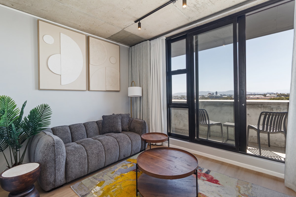 Sunny, light, super modern and trendy. A great space to work from or relax in on holiday in Cape Town. Central to all Cape Town tourist spots, UCT and Groote Schuur hospital. Conveniently located walking distance to festive restaurants, pubs and shops. 10 minutes from the city centre and Cape Town International Airport. Designer roof top pool terrace with views of Cape Town and indoor gym. Secure building with concierge desk and underground parking. Tastefully decorated with all amenities.