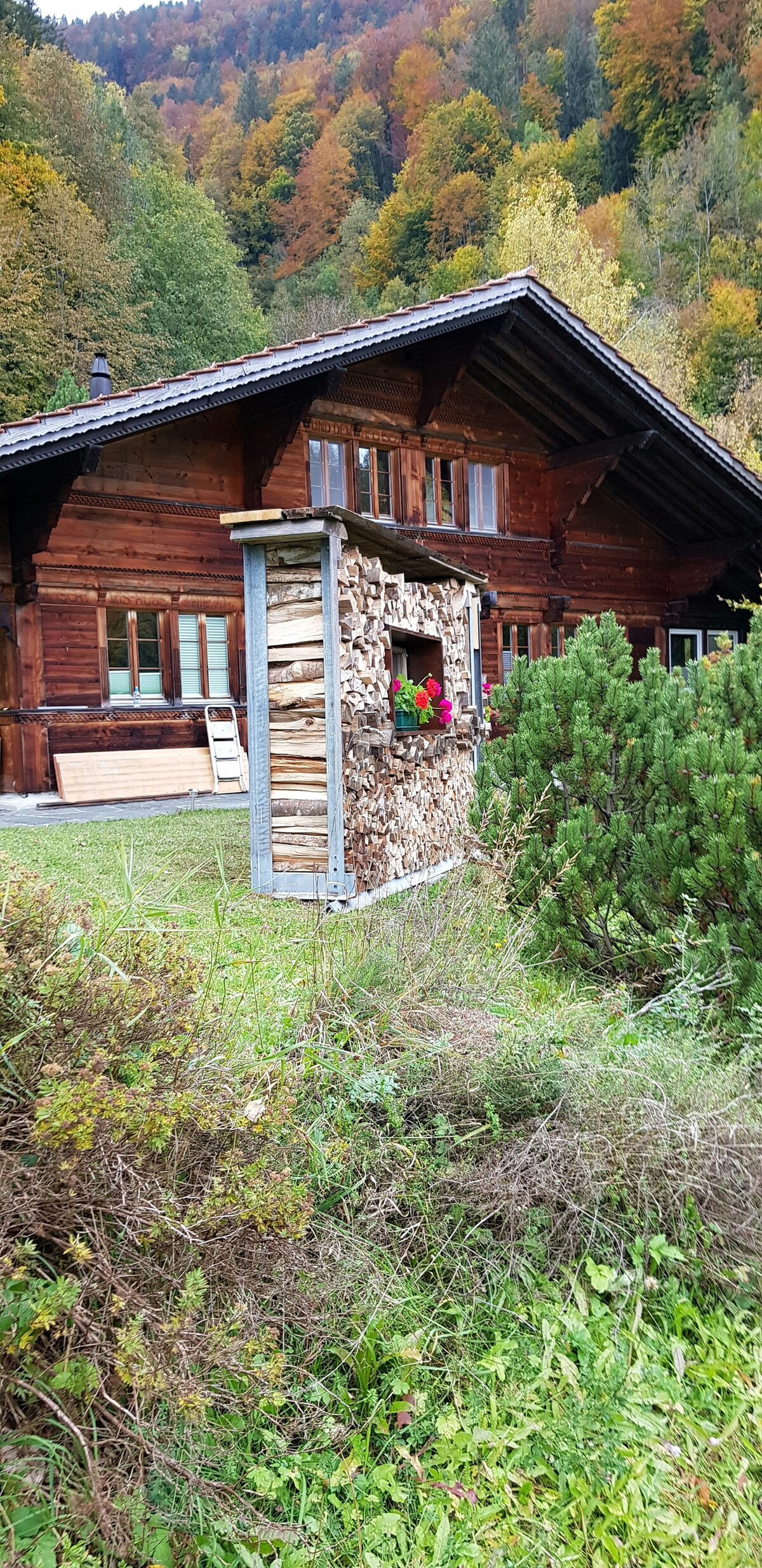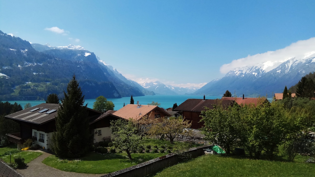 我的住宿位於布里恩茨和因特拉肯附近的一個小村莊的住宅區。 公共交通工具發達。 您會喜歡上那裡,因為小木屋氛圍溫馨,廚房設備齊全,還可以欣賞布里恩茨湖的美景。 住宿非常適合家庭(帶小孩)和大型團體。