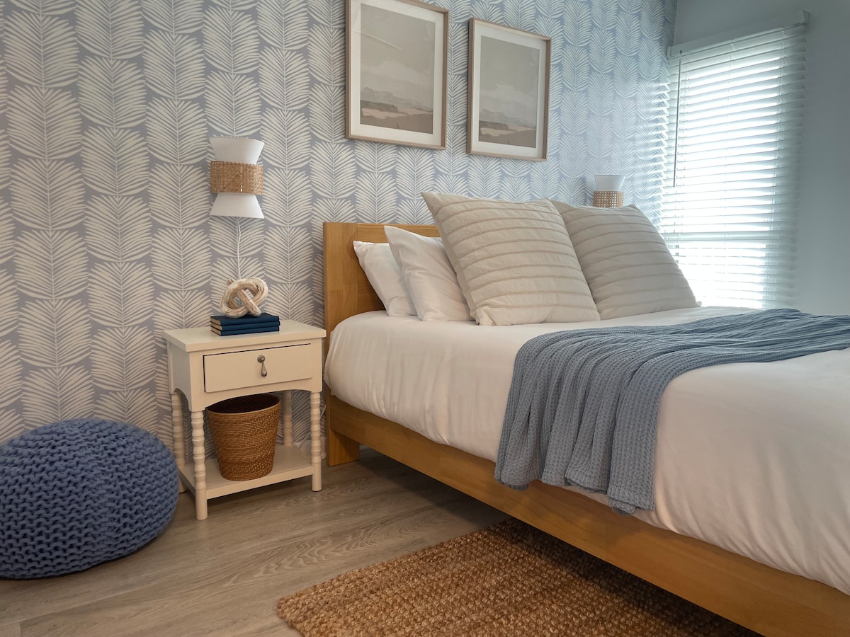 從 47 則評價中獲得 5 的平均評分(滿分 5 分)翻新的 1 間臥室,有海景