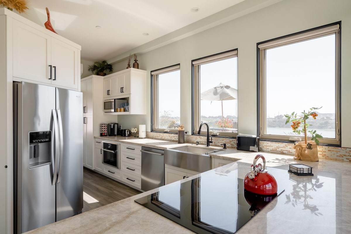 這間私人豪華單間公寓是您週末度假的理想住宿地點。 放鬆身心,享受最美麗的室內外生活,將微風帶入整面牆的cantina門,或從私人露臺欣賞海景日落。 高速WiFi和配備Netflix的智慧電視。 一個預留停車位,有充足的額外街頭停車位。距離海灘5個街區,步行或乘坐房源內的沙灘巡洋艦自行車。