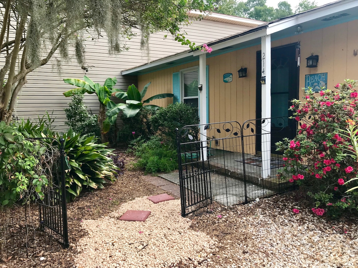 海灘天堂,位於門禁、海灘前高爾夫球車社區。在海風、鹹鹹的空氣和溫暖的陽光中醒來。距離海洋僅幾分鐘路程。現代化的精美家具,配備了家裡的所有便利設施。2張床、2間浴室和設備齊全的廚房。後院有圍欄。海濱村(Oceanside Village)設有全新的兒童噴水公園、室內和室外游泳池、網球場、健身中心、狗公園、釣魚湖、兒童遊樂場、壘球場、籃球場等。