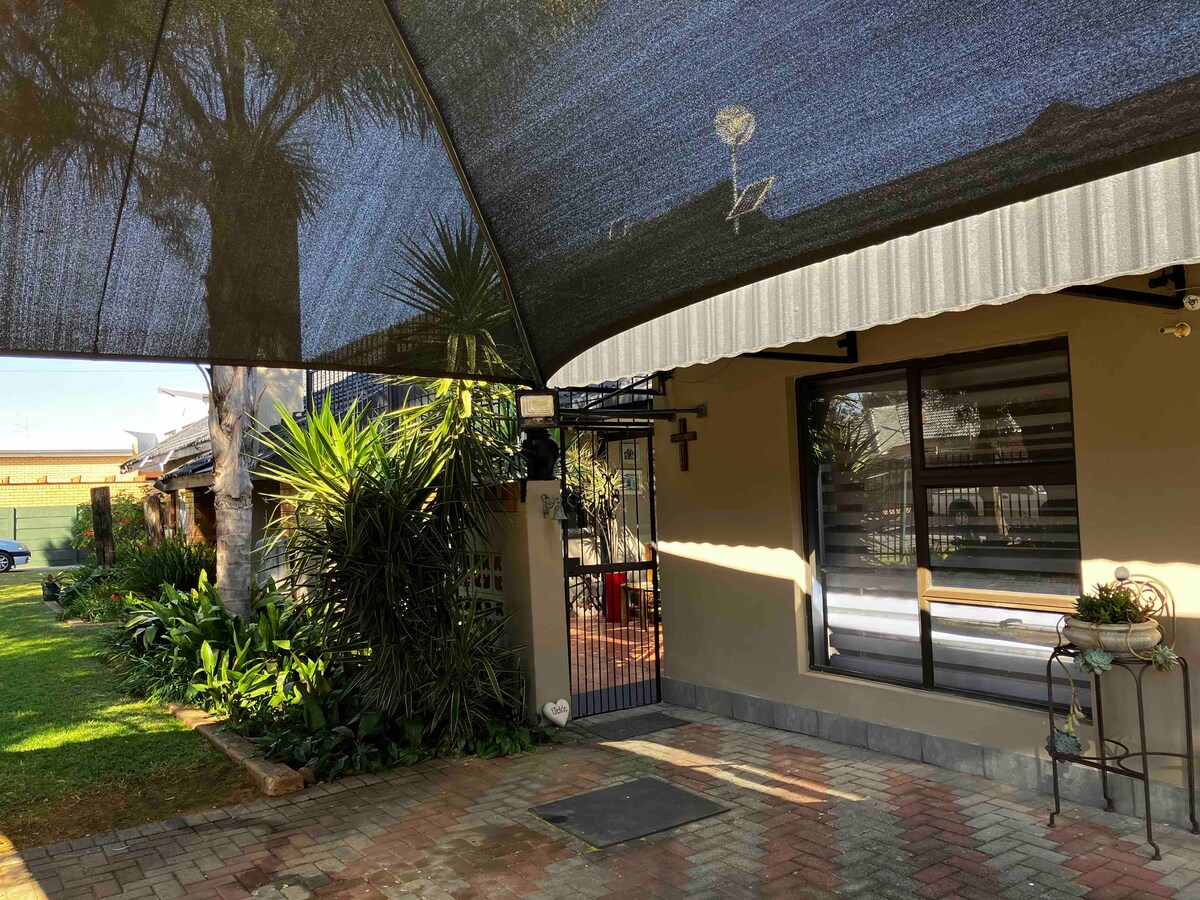 Welcome to your unique, modern and stylish apartment in Welkom, crafted from a transformed garage offering you a private and comfortable stay. This thoughtfully designed open-plan studio is perfect for relaxing, working, or as a home base. There's a double bed, a fully equipped kitchen with a gas stove and air fryer, a living area with a TV and Open View, a workspace and Wi-Fi. Self-check-in with a lockbox and use a dedicated carport.