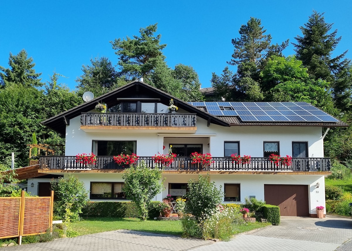 我們的現代化度假公寓位於我們房屋的頂樓,配有陽臺,可欣賞森林的美景,森林邊緣有一個大池塘,房屋前的花園中有一個小池塘。 保證純粹的自然和休閒 - 遠足、騎自行車或只是放鬆! 開車約一小時即可抵達法蘭克福、海德堡、美因茨和威斯巴登。 強烈建議開車前來 - 這裡幾乎沒有公共交通工具。