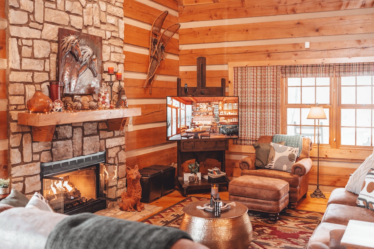 坐落在安靜的山頂上,您將在此寬敞而獨特的鄉村小屋中享受360 °的隱私! 主樓層設有設備齊全的廚房、配有DVD播放機和復古遊戲系統的客廳、用餐空間、全套浴室和2間臥室,每間臥室均配有一張雙人床和雙人床。 地下室樓下有另一間客廳、帶套房浴室的主臥室和健身房。 非常適合家庭、朋友團體、獵人等入住!