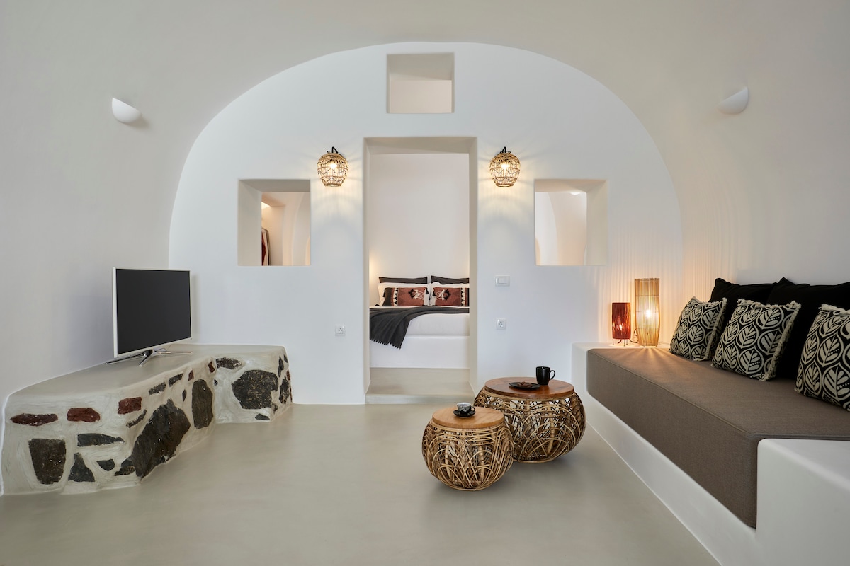 這間優雅的套房坐落在Oia的火山崖上。 它結合了傳統的基克拉澤斯建築與極簡的裝飾風格,是放鬆身心的完美選擇。 套房約48平方公尺,設有私人室內熱水浴缸,提供完全的隱私權,並可欣賞火山口和火山的美麗景色。 房價包含早餐。 房間配備空調、免費Wi-Fi、咖啡和茶具、浴室設備和智慧電視。