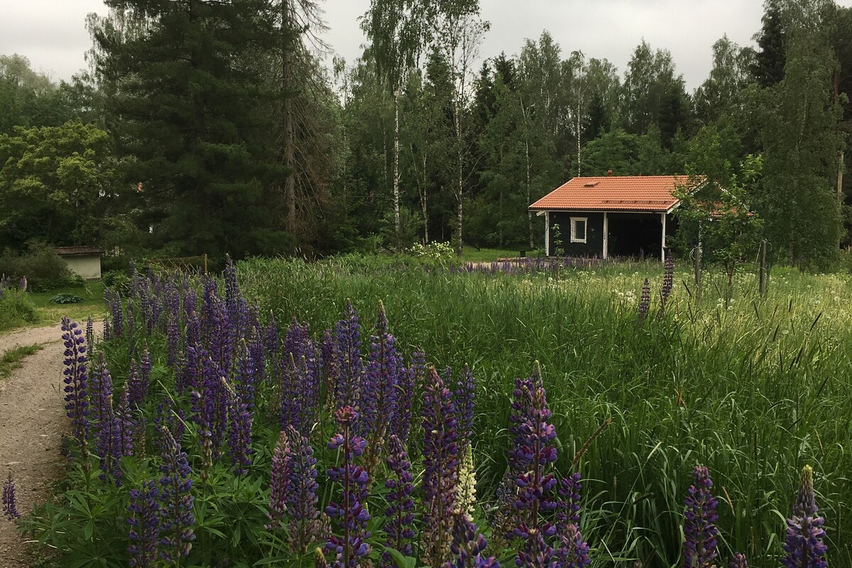This cozy cottage welcomes you to spend relaxing get-aways and longer remote work stays in the middle of beautiful and peaceful finnish nature. Cottage has two spacious cabins, a well-equipped kitchen, and a good sauna. The charming swimming pond is just a few steps and stairs away from the cottage. There is good wifi, big sunny lawn and no neighbours in sight - so you can swim in your birthday suite if you want :) The nearest grocery store is 12 min ride away.