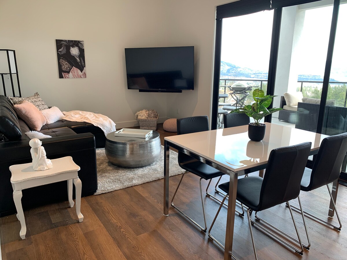 從這間獨立式一間臥室套房(配有私人密碼鎖入口)放鬆身心,欣賞景色。非常寬敞的戶外空間,有很多座位。全套廚房,包括爐子/烤箱、全尺寸冰箱和洗碗機。咖啡機、水壺、烤麵包機等。 臥室配有加大雙人床,配有WIC/洗衣房,方便您使用。 基洛納(Kelowna)的日夜美景。 靠近公園、徒步旅行、海灘,距離市中心的購物和餐廳5分鐘。開車10分鐘即可抵達許多酒莊園。