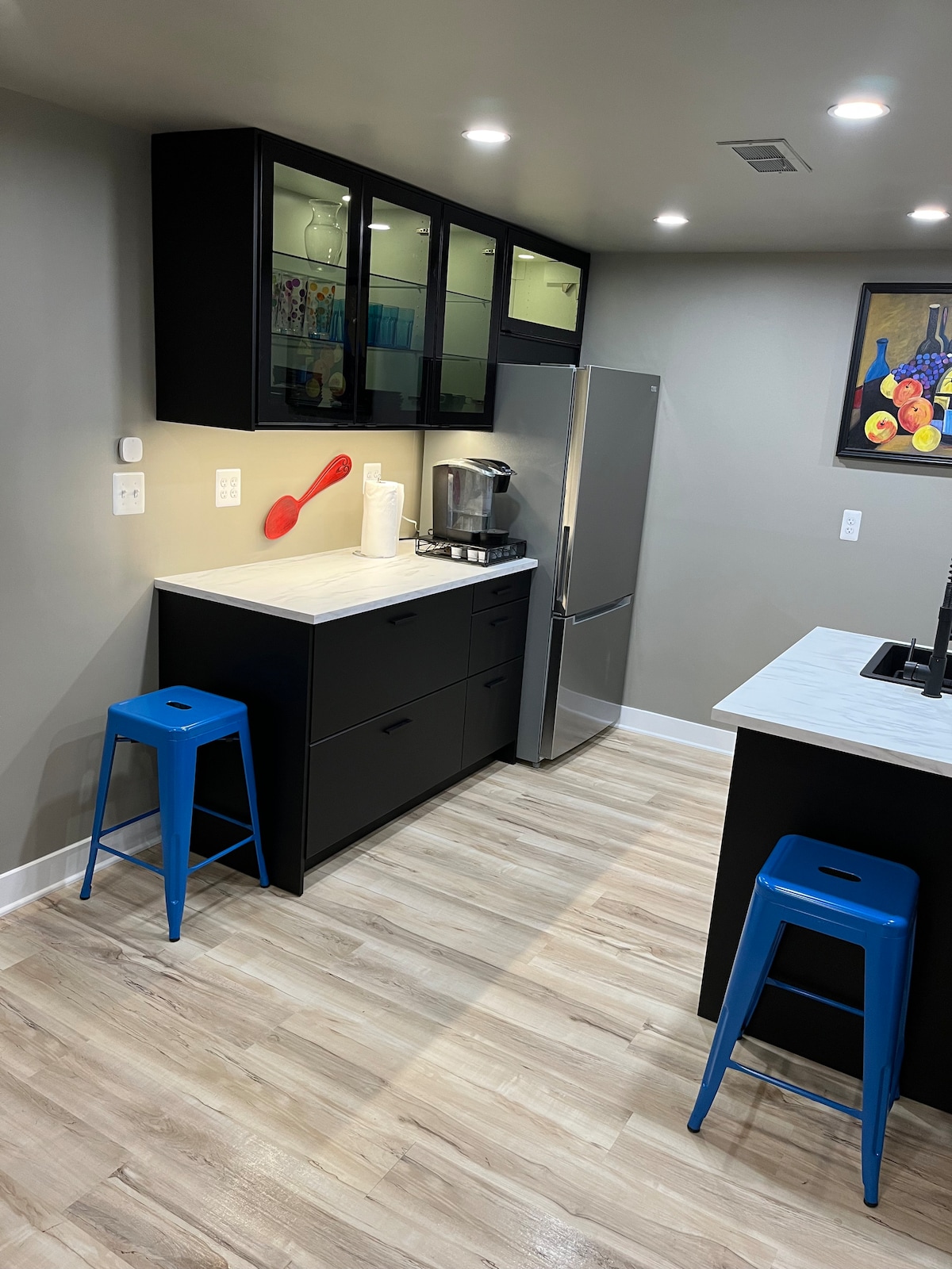 這間套房佔據了我們寬敞的主人佔用的MCM牧場房源的一半,提供安靜和私密的體驗,並有獨立的起居區域。 它有一個獨立的前門入口,並配有兩間臥室和兩間全功能浴室。 一間臥室是配備寬敞雙人床的套房,另一間臥室則配備兩張單人床。 享受陽光充足的休息室和飯店式小廚房。 起居空間約 1,000 平方英尺,您將有充足的空間可以工作、放鬆或舒適地享受您的時光。