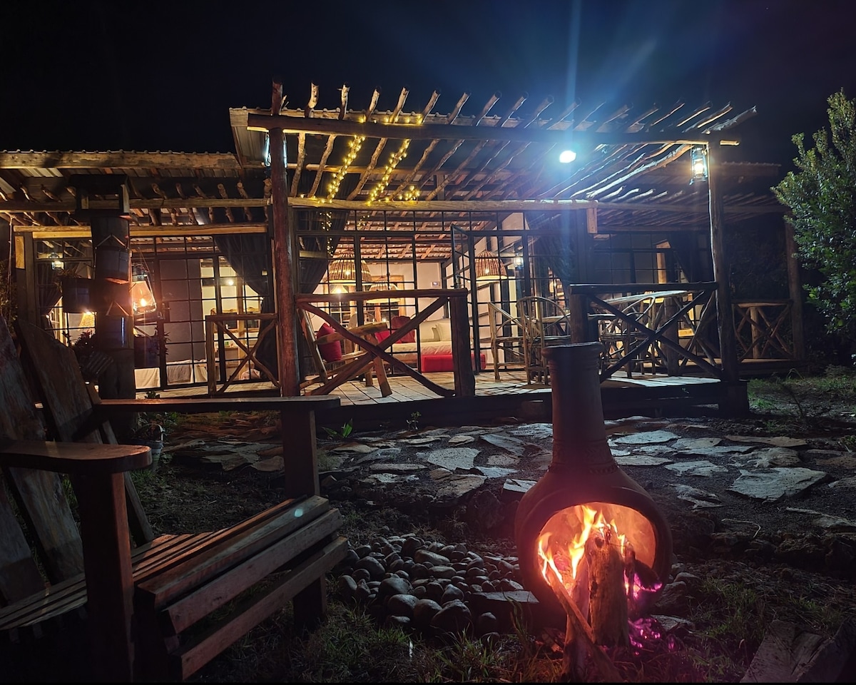 Tucked into a beautiful landscape with great views, Kilima A-frame is the perfect weekend hideaway. With a full glass wall facing mount Kenya and the stars, an outdoor kitchen and en-suite bathroom, you get full comfort with a glamping vibe. The A-frame is located on a big, guarded, private plot called “Kilima Gardens” 15 min from Nanyuki. Feel free to walk around, pet the donkeys and pigs, watch the sunset from the treehouse or enjoy the fire-heated sauna with a plunge pool. Welcome! Karibu!