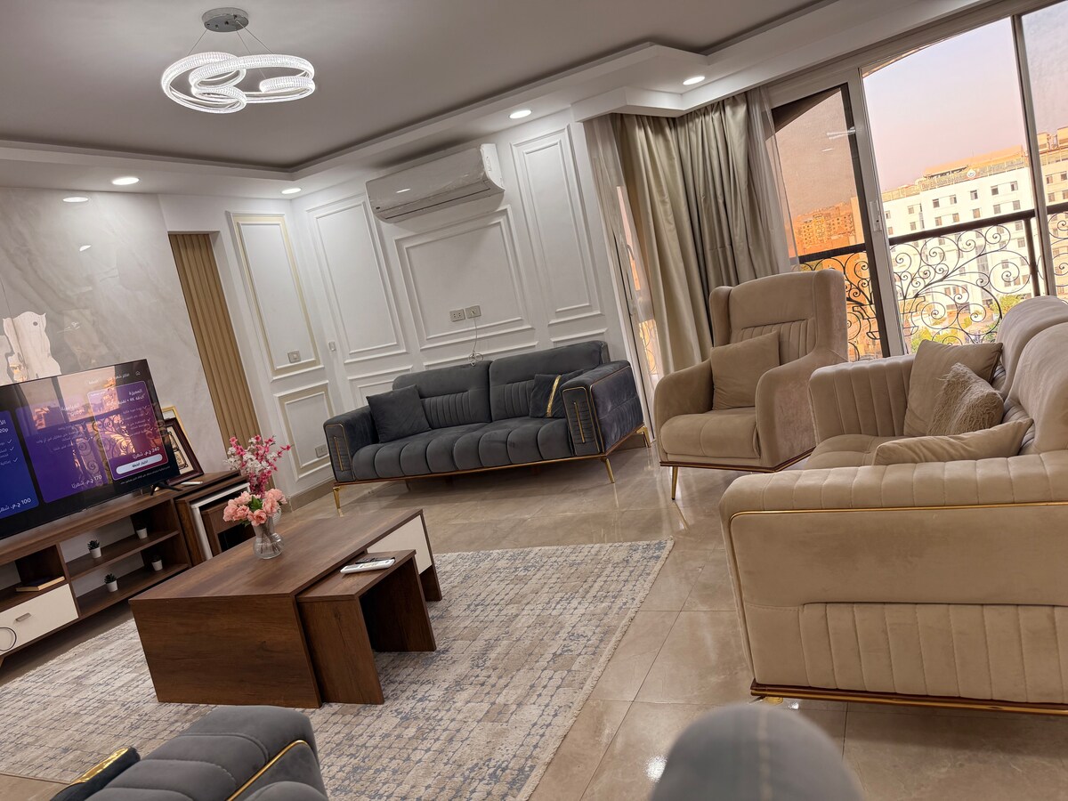 在這間時尚房源與全家和可愛的朋友(房客)一起共享天倫時光。 令人驚嘆的尼羅河景豪華3間主臥室,您可以在這裡欣賞日落景觀和金字塔。 在這個位於新塔樓的中心地帶享受時尚體驗,您可以與可愛的房客一起享受時尚的體驗,在時尚的房子內完全舒適 #距離市中心(開羅博物館和開羅塔) 10分鐘 # 12分鐘即可抵達Al Mohandessin #距離金字塔20分鐘路程
