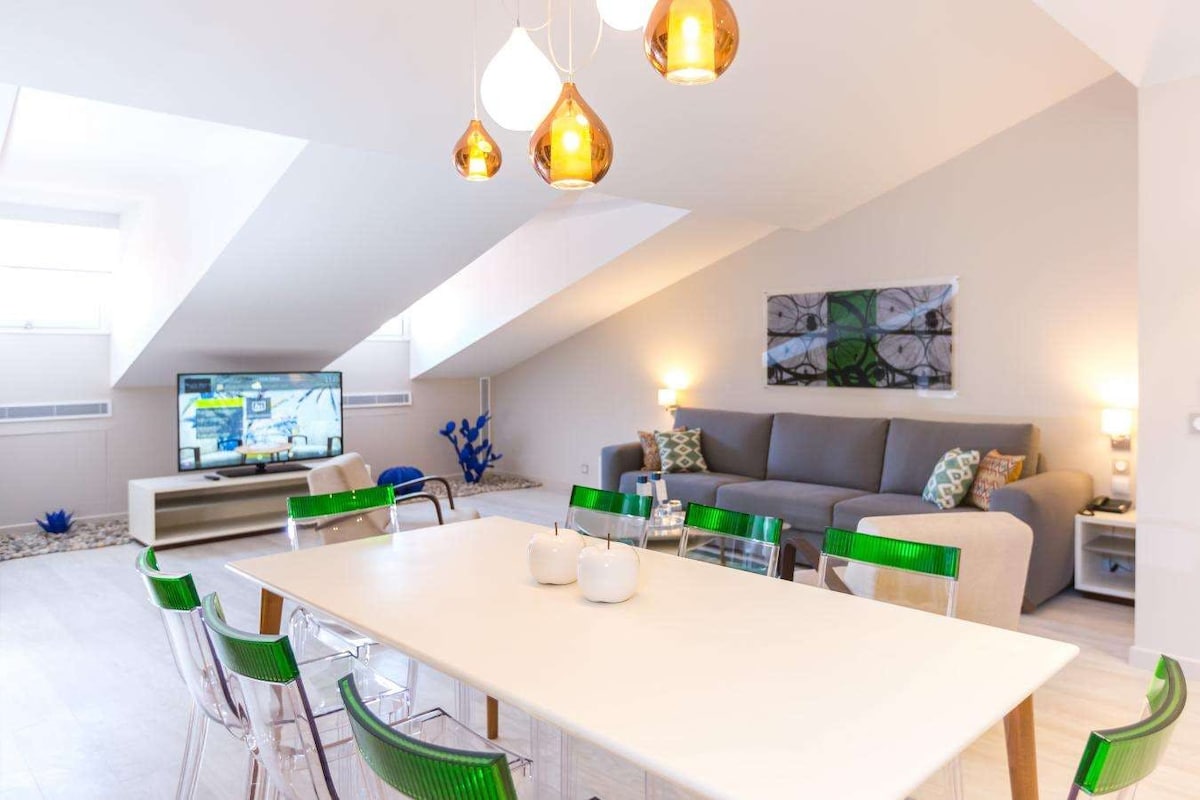The Deluxe Mezzanine Suite offers a range of high-end services. With its generous area of 44 m² and its two levels, it can accommodate up to four people. It has a fully equipped kitchen and quality bedding, as well as refined contemporary decor. You will thus benefit from optimal comfort, further enriching your memorable stay in Nice.