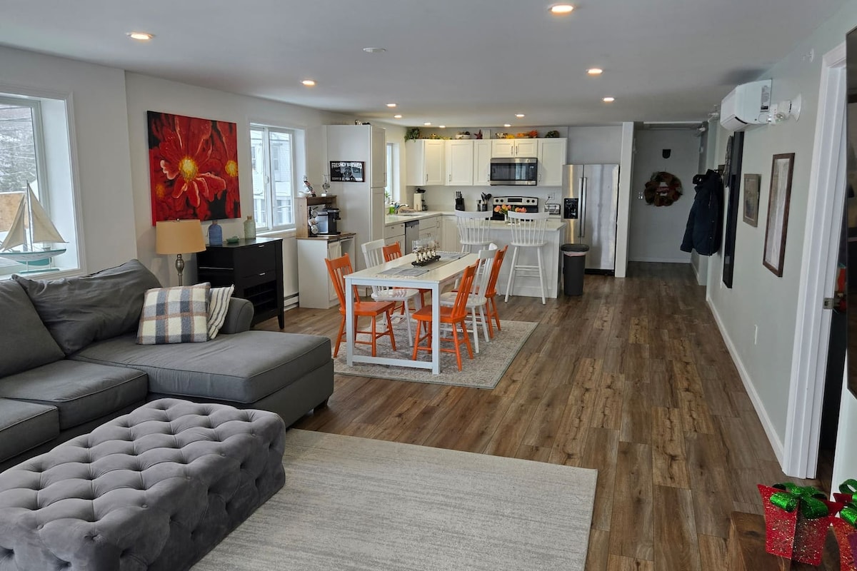 The Lower Village Lofts *North* is a newly renovated large studio apartment located in the heart of the action - just steps from Dock Square (downtown Kennebunkport) and 1/2 mile to the beach! This unit features a brand new fully equipped kitchen, all new designer and higher end furnishings, and a custom built-in room divider complete with an electric fireplace, armoire, and 50" smart TV. The bedroom area has a new king bed with luxurious bedding, black out shades, and an additional smart TV.