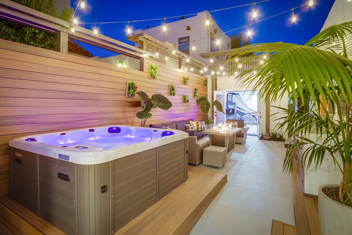 非常適合您下次與家人和朋友度假的完美房源! 最佳位置:靠近會議中心、煤氣燈區、小意大利、巴爾博亞公園、聖地牙哥動物園,距離所有景點和海灘僅幾分鐘路程,位於一個安靜且安全的街區。 驚人的設備與服務:停車位、空調、桌上足球、按摩浴池、乒乓球和泳池、高速 WiFi、夢幻庭院 令人驚嘆的設計:頂級和最優質的電器、電子產品、家具、寢具。廚師設備齊全的廚房。Posturepedic床墊等。