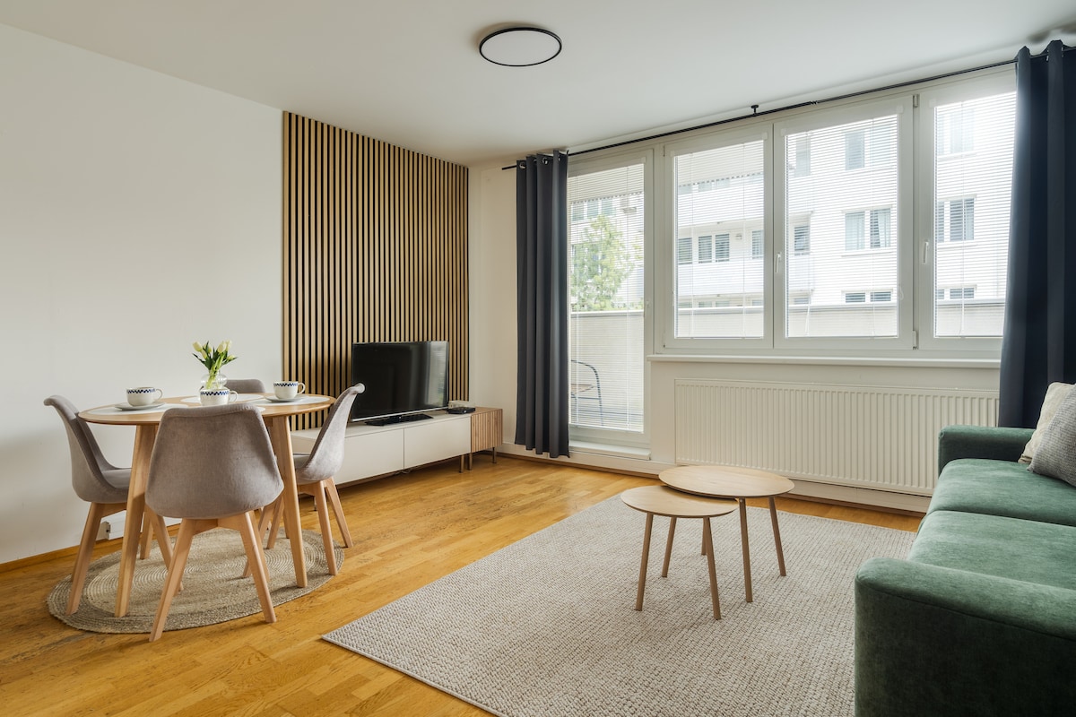 這套單臥室公寓位於市中心,非常適合個人或情侶入住。 第二間房間設計為開放空間,連接廚房和時尚的客廳。 最大的優點是您可以在自己的公寓享受布拉提斯拉瓦的主要景點。 浴室配備角落淋浴間、洗手台和洗衣機。 Le Petit Restaurant 提供免費自助早餐,步行2分鐘即可抵達。