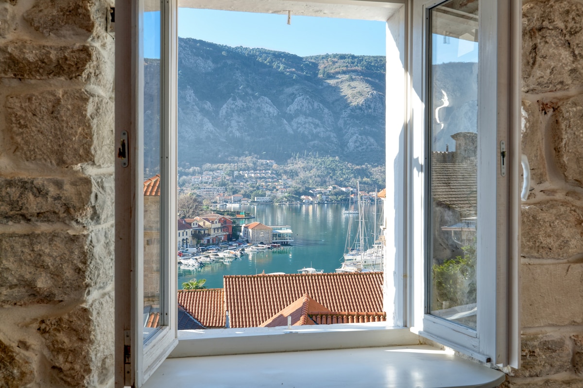 這間浪漫的單間公寓位於科托爾舊城的中世紀城牆內,結合了質樸的石牆和現代的舒適。 這裡以擁有城裡最美的景觀之一而聞名,值得爬上 80 階的階梯。 在室內,您可以在舒適的雙人床上放鬆身心,在設備齊全的廚房烹飪,並享受明亮、通風的空間。 房客可以在共用花園露臺上放鬆身心,欣賞舊城區和海灣的美景,距離迷人的餐廳、熱鬧的咖啡廳、精品店和文化地標僅幾步之遙。