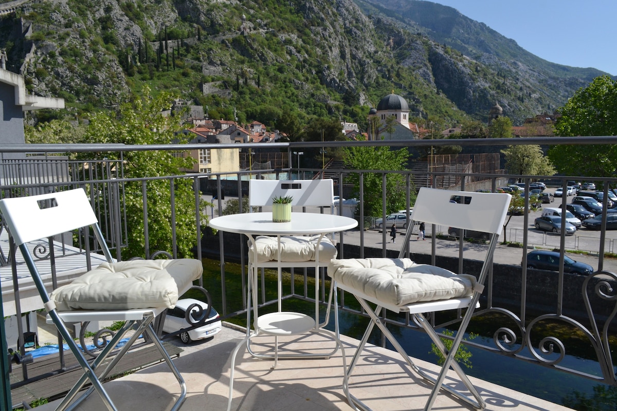 Right in the middle of world heritage of Kotor Old Town, climb 54 steps to this amazing studio with private garden and terrace featuring stunning views onto the rooftops, surrounding mountains and the sea. All walls are exposed stone or rock lovingly restored. The kitchen is well appointed and the decor is modern, light and comfortable. Old meets new.