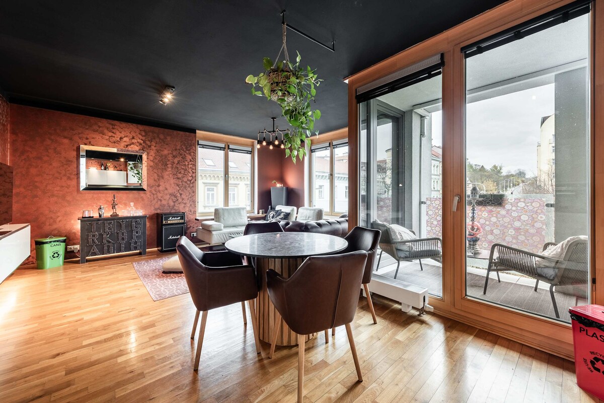 Marina Boulevard頂樓公寓,110平方公尺公寓,大露臺,配有燒烤設備。距離市中心只有 8 分鐘。完美的度假勝地或旅客的家庭辦公室。Marina Boulevard Penthouse位於布拉格8號私人住宅區。位於伏爾塔瓦河畔,步行即可抵達市中心,穿過綠色公園或沿著北部河流抵達布拉格最大的公園「Stromovka」。距離Libensky Most電車站2分鐘或距離Palmovka地鐵站5分鐘。