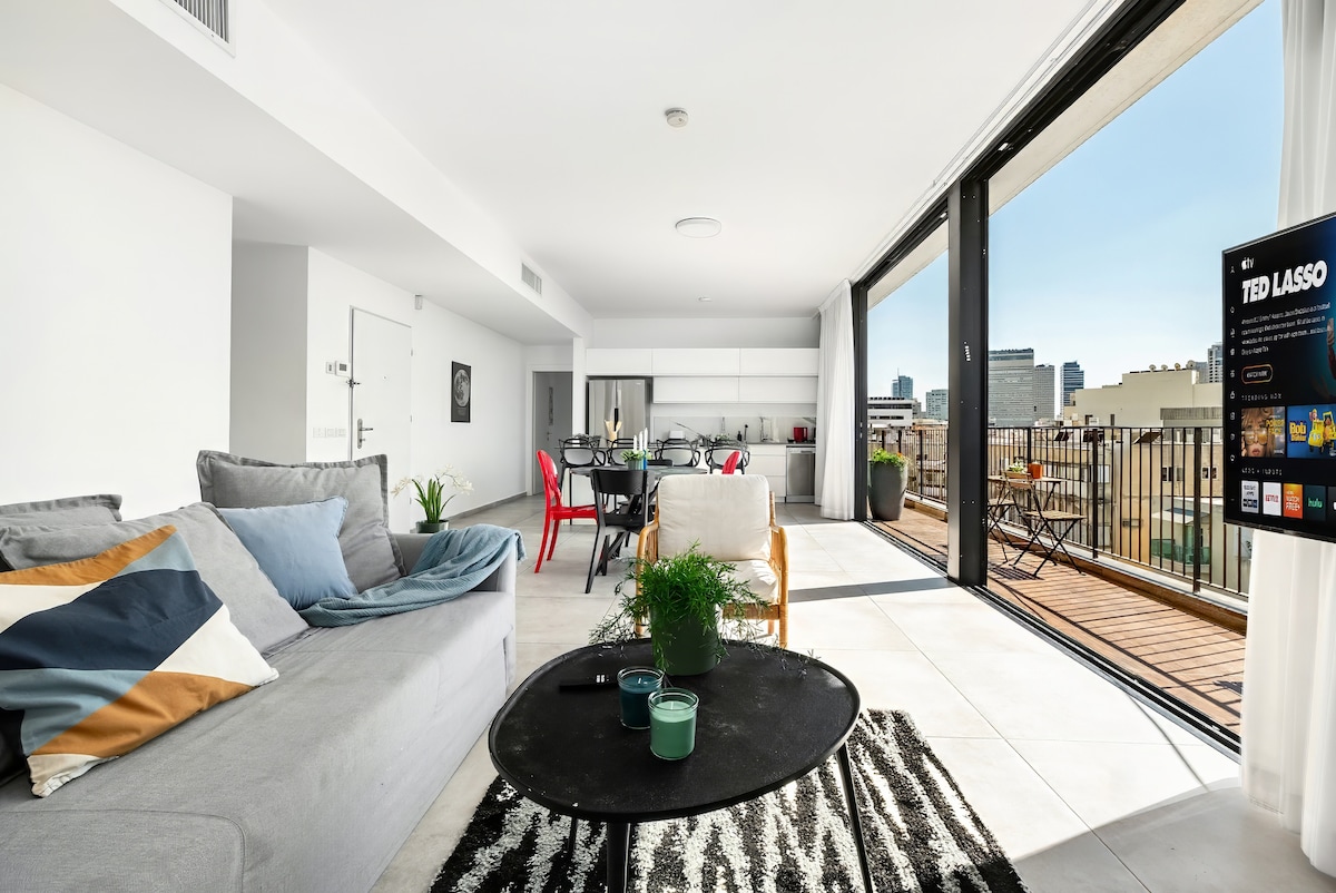 全新翻修,設計精美的2層頂層公寓,可通往海灘景觀的單間公寓套房,距離Gordon海灘2分鐘,就在飯店區域( Sheraton, Hilton )。 142平方公尺的所有142平方公尺都配備齊全,讓您在特拉維夫的主要位置度過美好假期,在永不睡覺的城市。 步行2分鐘即可抵達熱門的步行街Ben Yehuda ,有許多好的餐廳和瘋狂的夜生活。 距離Dizengof購物中心和卡梅爾市場也只有一步之遙。