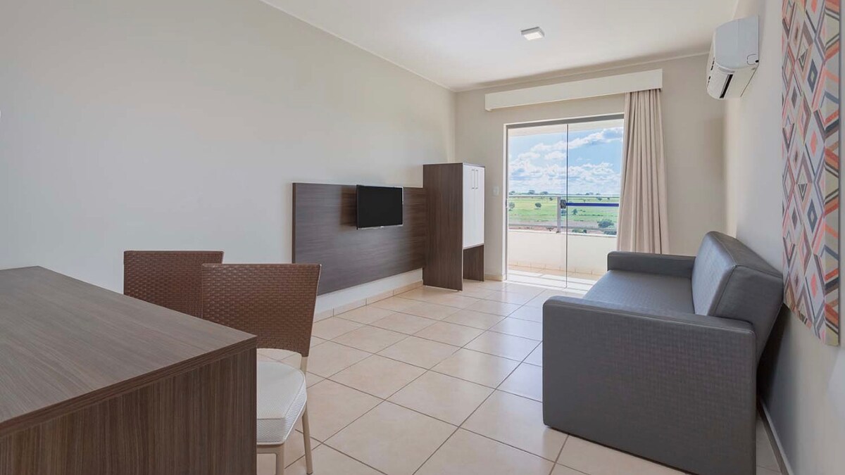 Apartamento com 1 dormitório . Decoração moderna, localizado ao lado do Parque Thermas dos Laranjais em Olímpia. A limitação de hospedes é de 5 pessoas e uma criança. Não é possível alterar, pois são limitações do Resort.