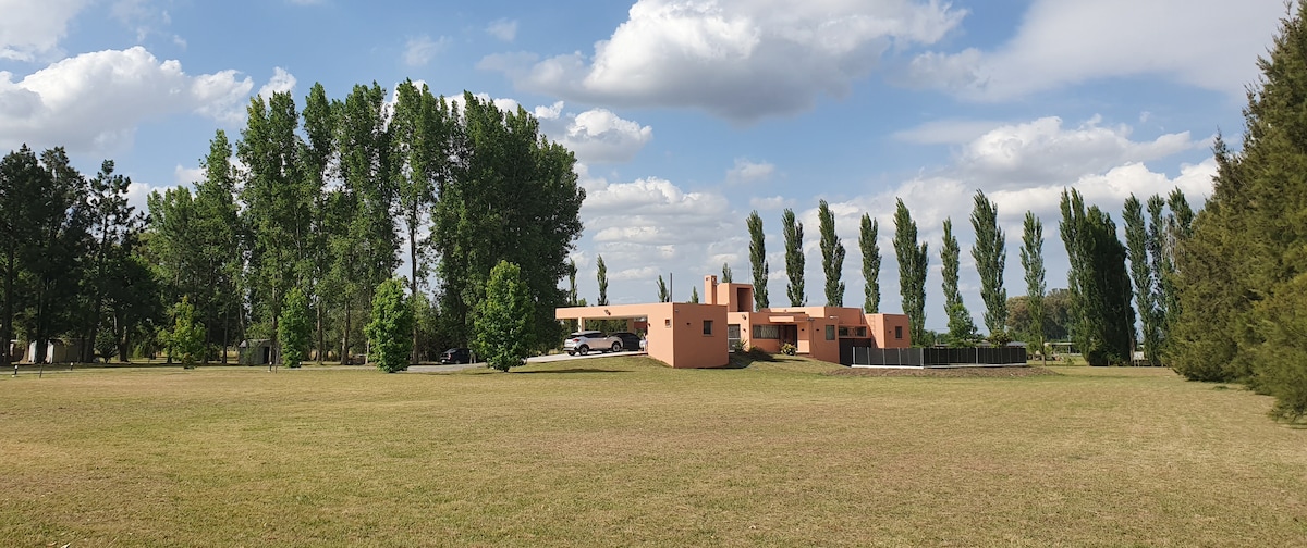 Mercedes 的漂亮 5 層房屋。 大型泳池(13公尺 x 5公尺),配有嬰兒淺水區、露臺和日光浴區。 這裡還有一座 4,500 公尺的大公園,內有足球場、私人森林和兒童遊樂設施。 非常適合與家人或朋友一起燒烤。 室內氛圍非常好,有整合式廚房和客廳,客廳裡有兩張雙人日式床墊。 配備 DirectTV 的電視、冬季可使用的木柴壁爐,夏天非常涼爽。 隔開的浴室和雙人臥室,提供嬰兒床 最少2晚