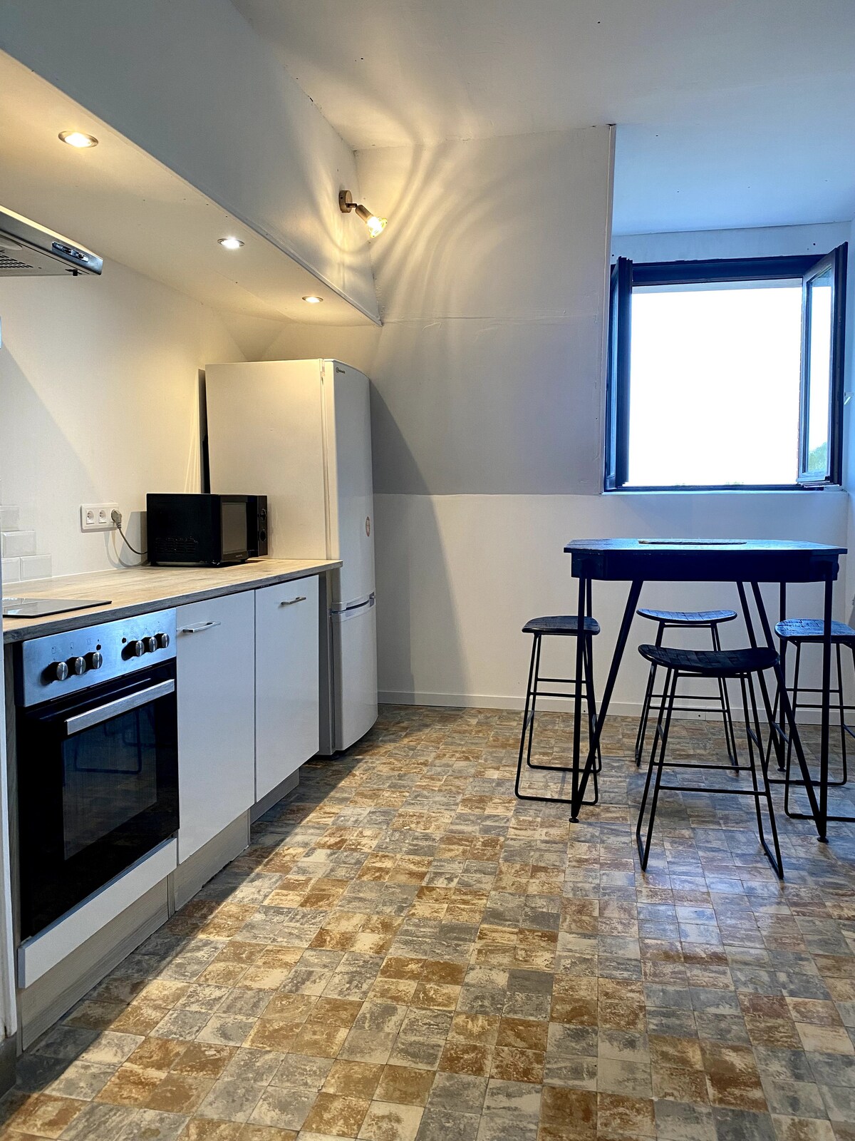 在這間 70 平方公尺的功能性公寓中,讓您有家的感覺。 設備齊全的公寓,配有設備齊全的廚房(咖啡機、Senseo咖啡機、水壺、瑞士乳酪烤肉機、烤麵包機、微波爐等)、洗衣機、帶冷凍櫃的冰箱、辦公桌、WiFi、嬰兒椅、顆粒爐等。 開放式客廳,配有沙發床 每間臥室都有浴室 1 間臥室:1 張雙人床 1 間臥室:1 張雙人床 + 1 張單人床 * 請注意,床單和毛巾不包含在租金中 * 免費停車