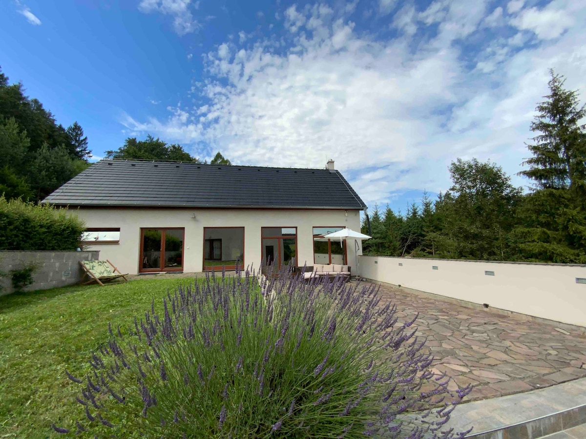 Enjoy the beautiful surroundings of this romantic place in the heart of nature. Our house stands deep in the forest where you will be surrounded by only silence and peace. It is an ideal place to relax and recharge your batteries. All with the comfort of a five-star hotel. Finnish sauna, outdoor heated hot tub - in short, everything you expect from a pleasantly spent rest.