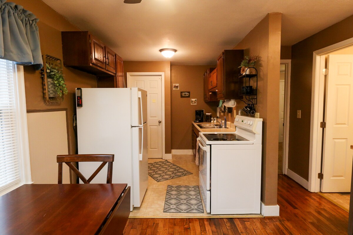 Make some memories at this unique and family-friendly place. This two bedroom, one bath home features one queen size bed and one full size bed along with a shared full bathroom with stand up shower. Full kitchen, living room and dining area. Washer and dryer on-site. 2 car off street parking in front. Easily accessible off I-35. Only minutes (.8 miles) from downtown Emporia and all of the activities Emporia offers.