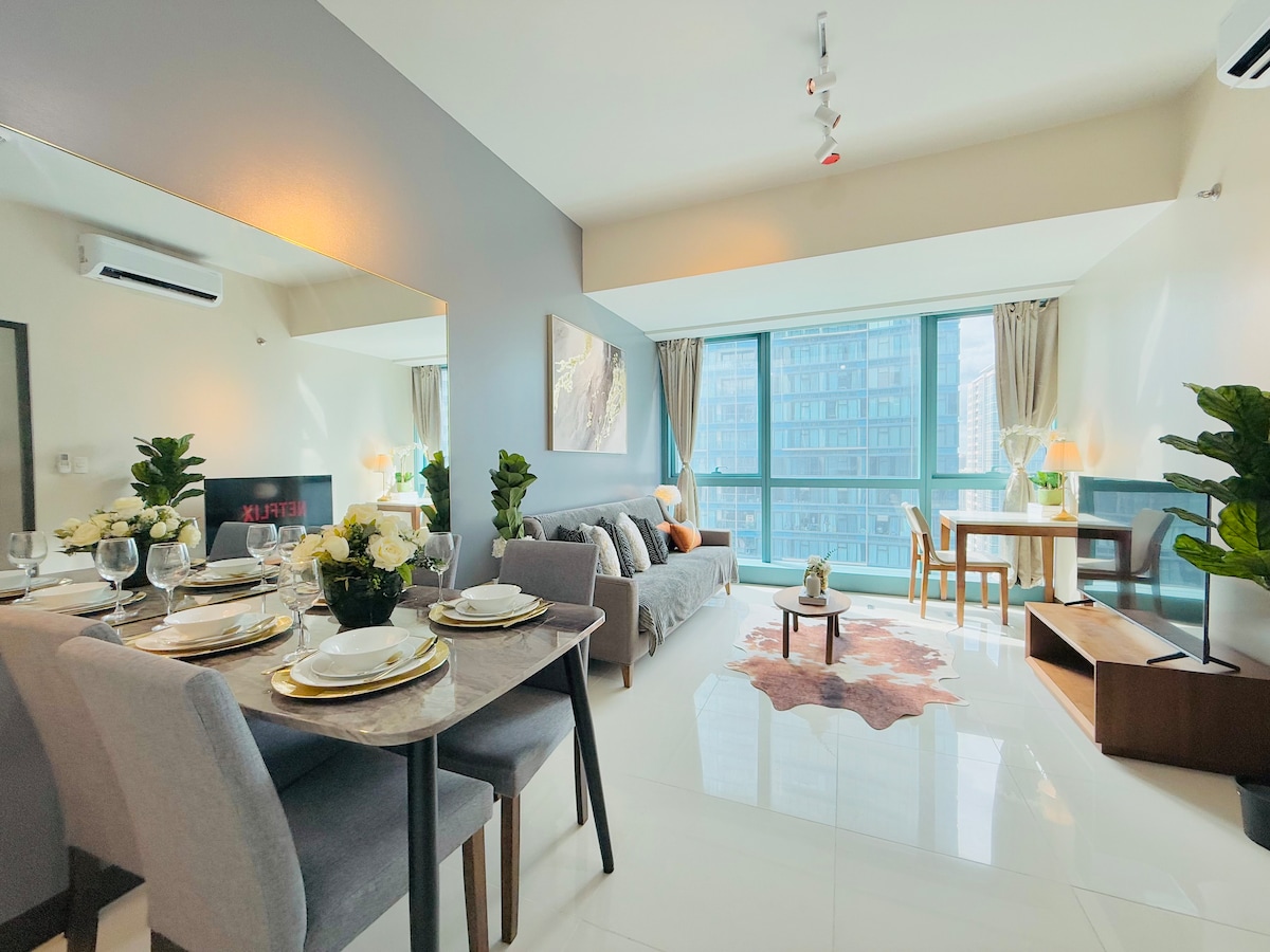 這個時尚而獨特的房源靈感來自Crazy Rich亞洲室內裝潢。 這個全新的空間坐落在博尼法西奧全球城市的中心地帶,為全國首屈一指的生活方式商業區帶來完美的體驗。 -智能鎖無鑰匙自助入住 - Max/HBO 50寸4K智慧電視 -智能空調和電燈 非常快的WiFi 250 Mbps -安靜的工作站 人客權限 遊泳池(僅限週二至週五) 商場內沒有健身房,但有健身房 停車位 籃球場和羽毛球場(必須提前一週預訂)