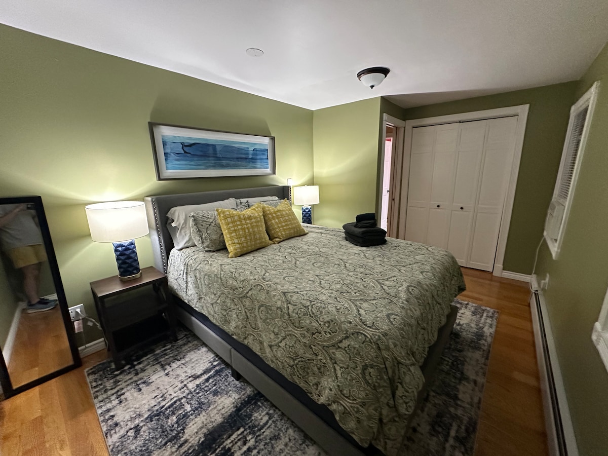 *請在詢問前閱讀*我們的定價是根據臥室的使用情況- 1間臥室為每晚250美元, 2間臥室為每晚400美元(不含Airbnb費用)最少住宿2晚,最多可容納4位房客。 私人、寬敞的套房,距離一切僅幾步之遙! 兩間大臥室、全套浴室和優雅的客廳,配有開放式燃氣壁爐,所有家傳家寶家具。 豪華床單。獨立入口。步入式淋浴間。沒有廚房,但我們提供迷你冰箱和微波爐!