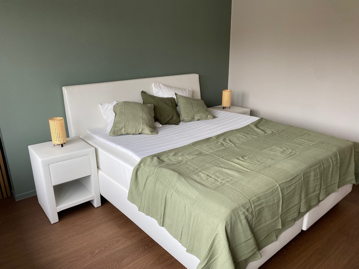 位於拿撒勒的新單間公寓,靠近根特和佛蘭芒阿登。 它是農場的一部分,有美麗的花園、許多動物和可愛的池塘。 地理位置靠近高速公路,您可以在外面聽到。 工作室非常寬敞,位於屋頂下方,可以通過外面的樓梯到達。 單間公寓包括一個入口大廳、起居空間、廚房、用餐區域、帶雙人牀的睡眠場所、浴室和廁所。