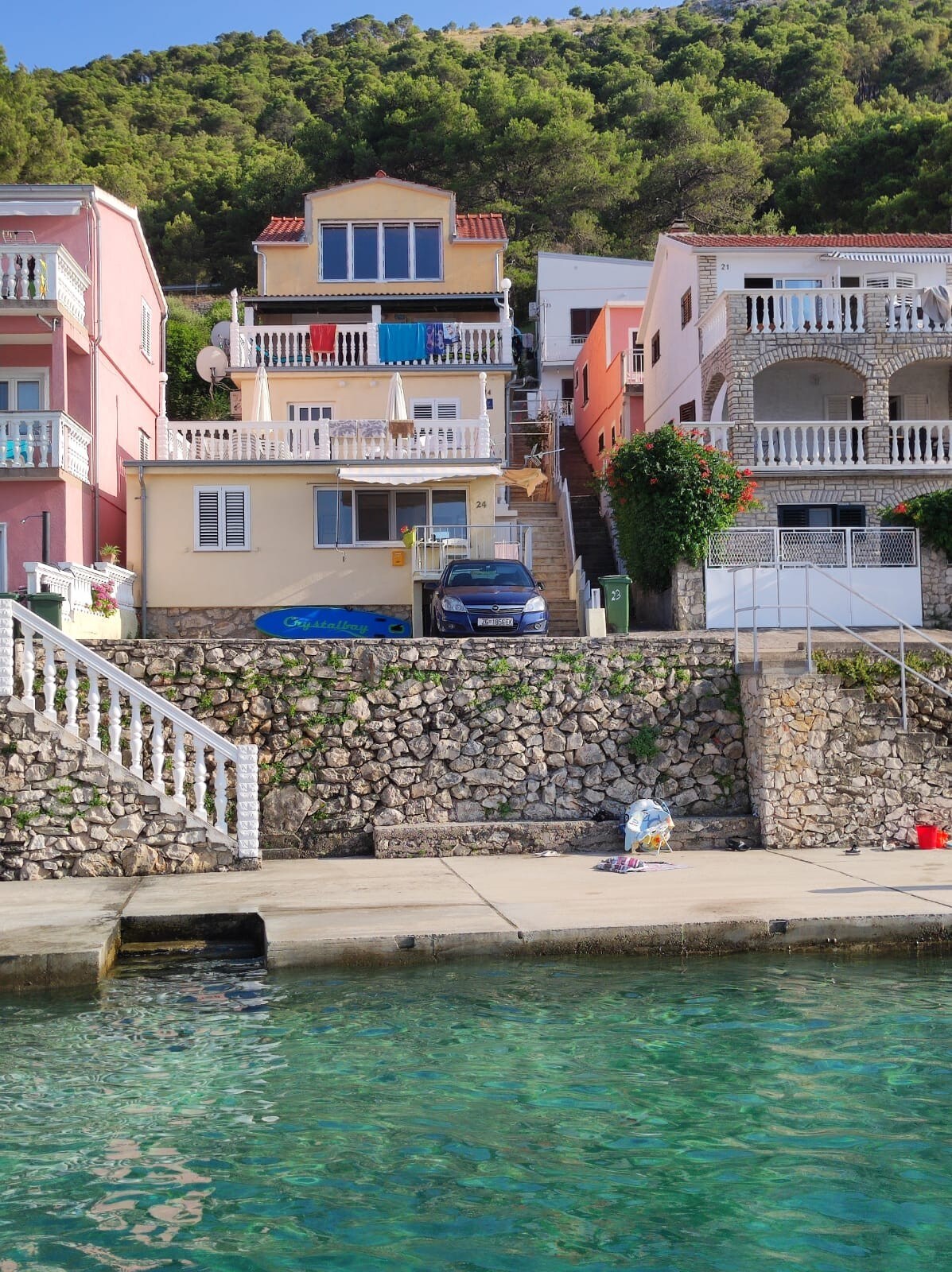 Exclusive 2 bedroom modern suite 2 meters from the beach. Suite is a part of Pearl House situated in small touristic place in the quite Adriatic bay. TV in each bedroom Fully equipped kitchen Air conditioning Bathroom with walk-in shower Swimming pool Wifi and free parking Bouy in the sea owned by the Pearl House in front of the Suite. Mooring can support the vessel up to 7m.For entering and exiting you can shortly dock by the pier in front of the Suite.